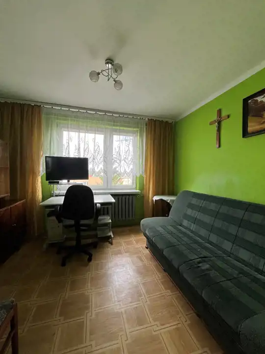 Mieszkanie jest bardzo funkcjonalne z dużym potencjałem na aranżacje pod własne preferencje. Każde z pomieszczeń jest oddzielne. Duża widna osobna kuchnia w której jest możliwość wykonania dużej zabudowy na wymiar, zmieści się również duży stół z krzesłami. Salon przestronny w kształcie prostokąta z miejscem na sofę, szafę i szafkę RTV. Sypialnia doskonale sprawdzi się jako pokój dla dziecka lub gabinet. Łazienka z miejscem na wannę lub kabinę prysznicową, WC, pralkę oraz umywalkę. Przedpokój pomieści szafę w zabudowie.