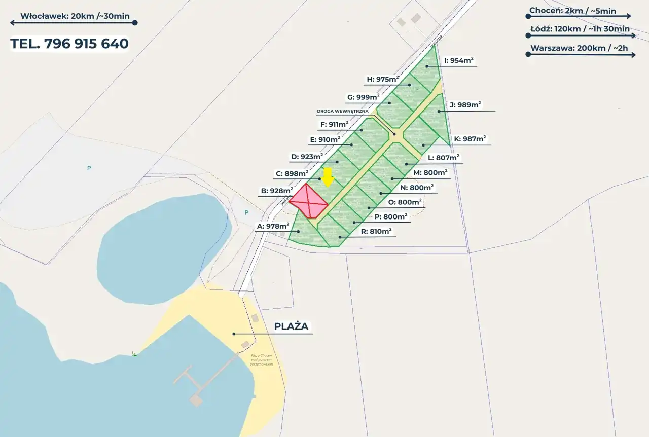 Oferuje do sprzedaży działki znajdujące się bezpośrednio przy głownej plaży jeziora Borzymowskiego w okolicach miejscowości Choceń (powiat włocławski).