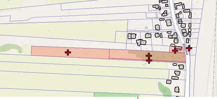 - Media Woda: na działce; Kanalizacja: na działce; Prąd: na działce; Gaz: brak