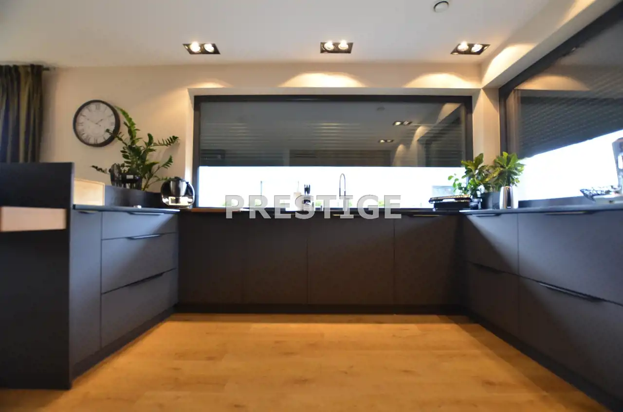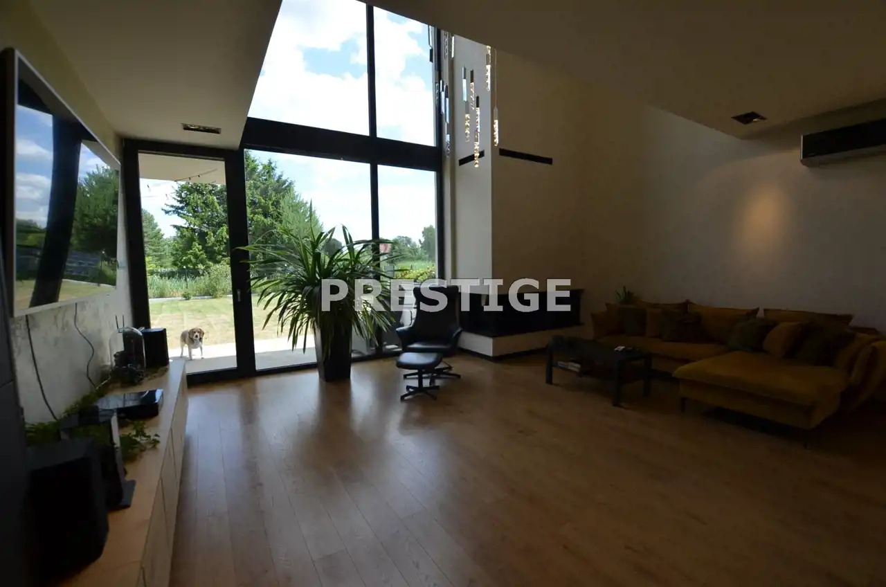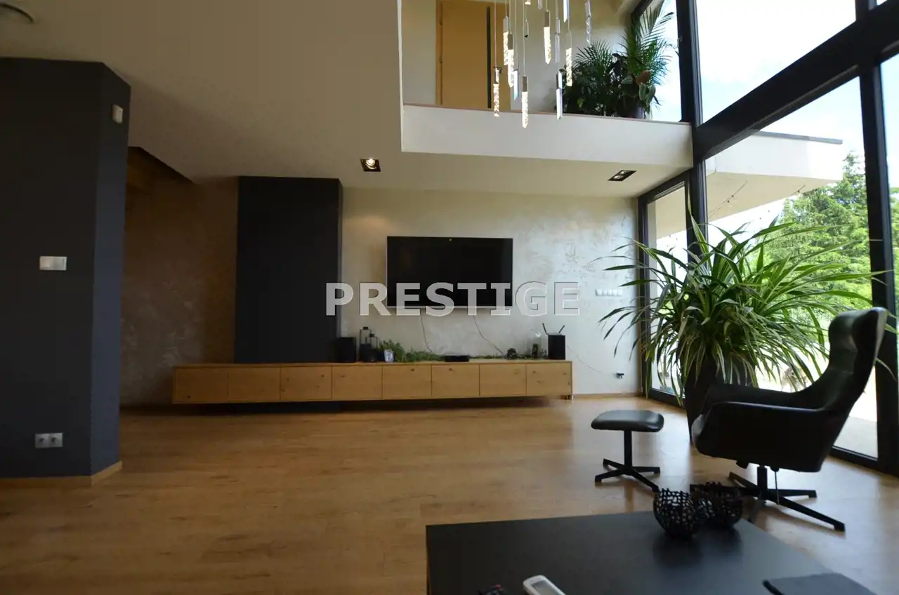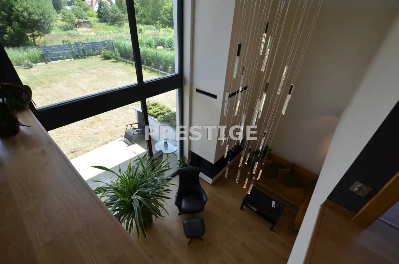 Na poziomie parteru wydzielono przestronną część dzienną stanowiącą otwartą przestrzeń: salonu, kuchni i jadalni. Salon z dużymi przeszkleniami na rekreacyjną, zieloną część ogrodu. Kuchnia zabudowana na wymiar, blaty granitowe, meble i sprzęt AGD wysokiej jakości. Jadalnia w której wygodnie pomieści się duża rodzina przy jednym stole.