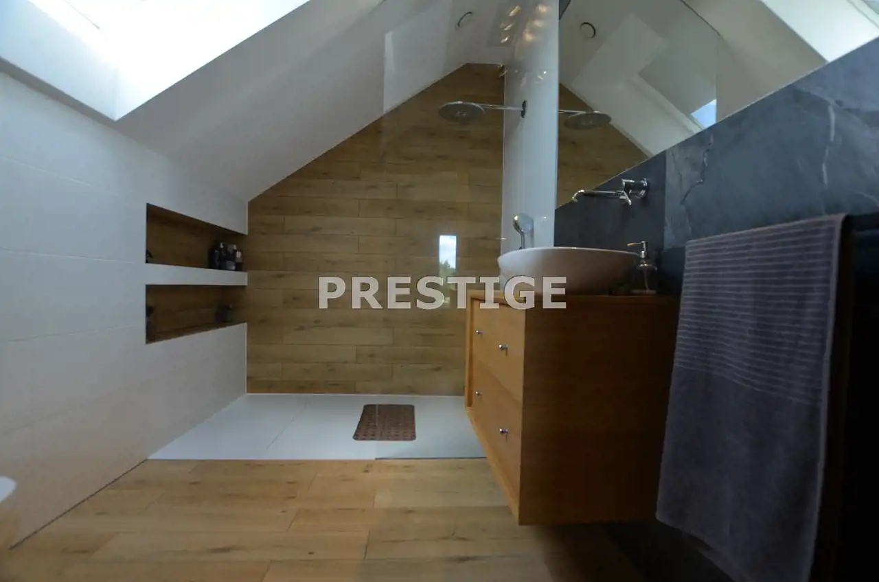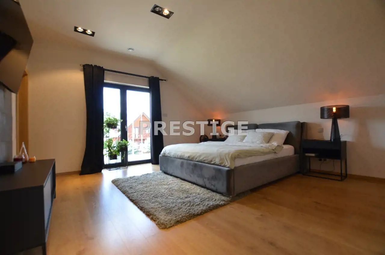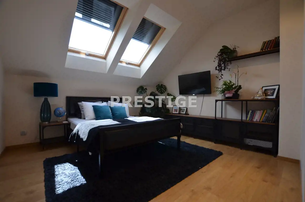 Na poddasze prowadzą piękne schody. Na tym poziomie rozmieszczono 3 sypialnię, w tym sypialnia główna z garderobą i prywatną łazienką. Dodatkowo rodzinną łazienkę i pralnię.