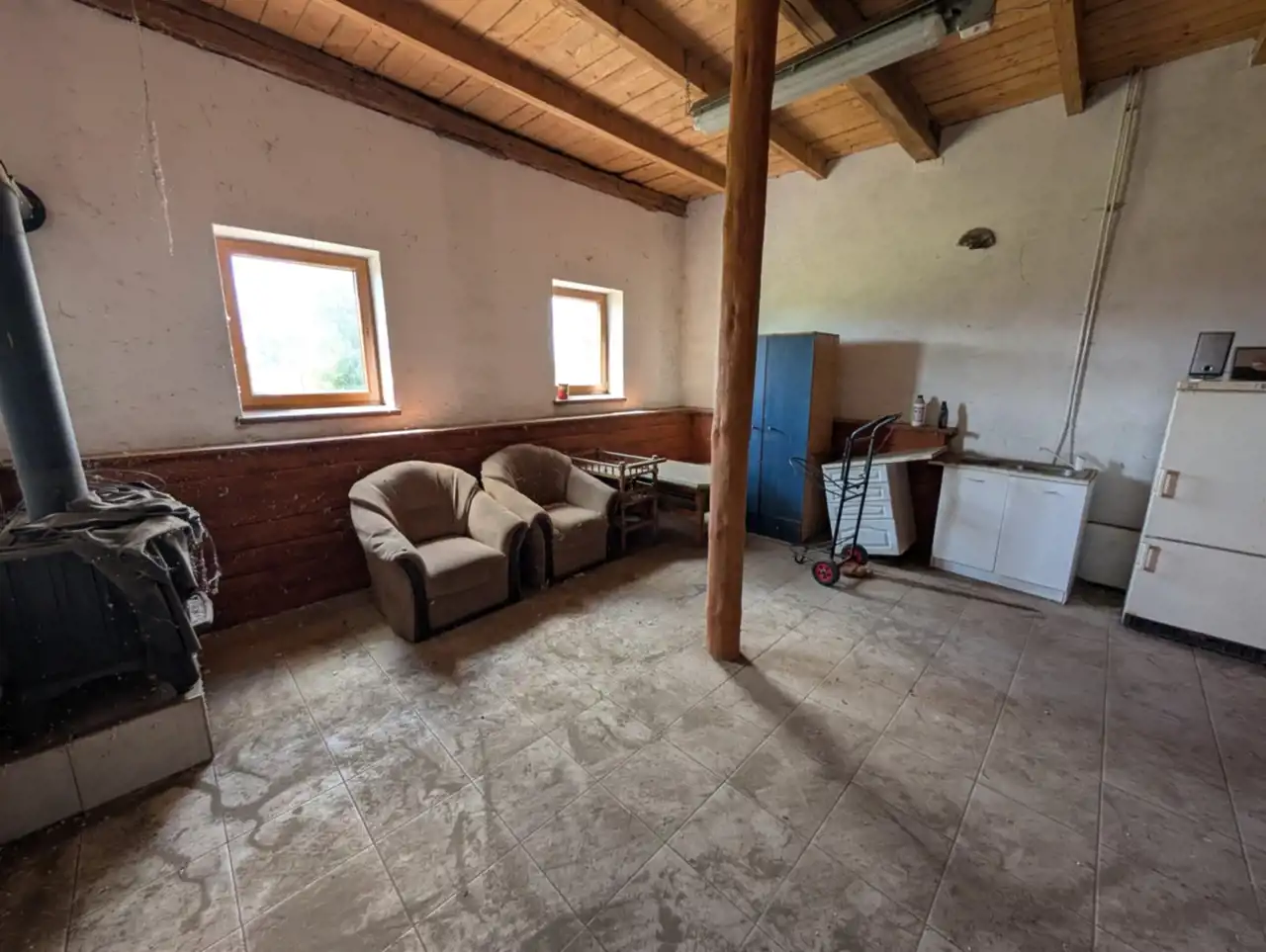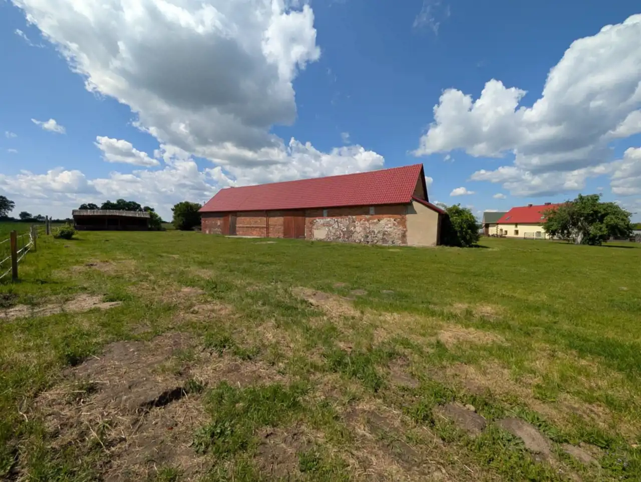 - trzech budynków murowanych w bardzo dobrym stanie technicznym o łącznej pow. około 380m2 (wymienione okna, betonowe posadzki, wymieniony częściowo dach), z wygospodarowanymi boksami dla koni na wydzielonym terenie,