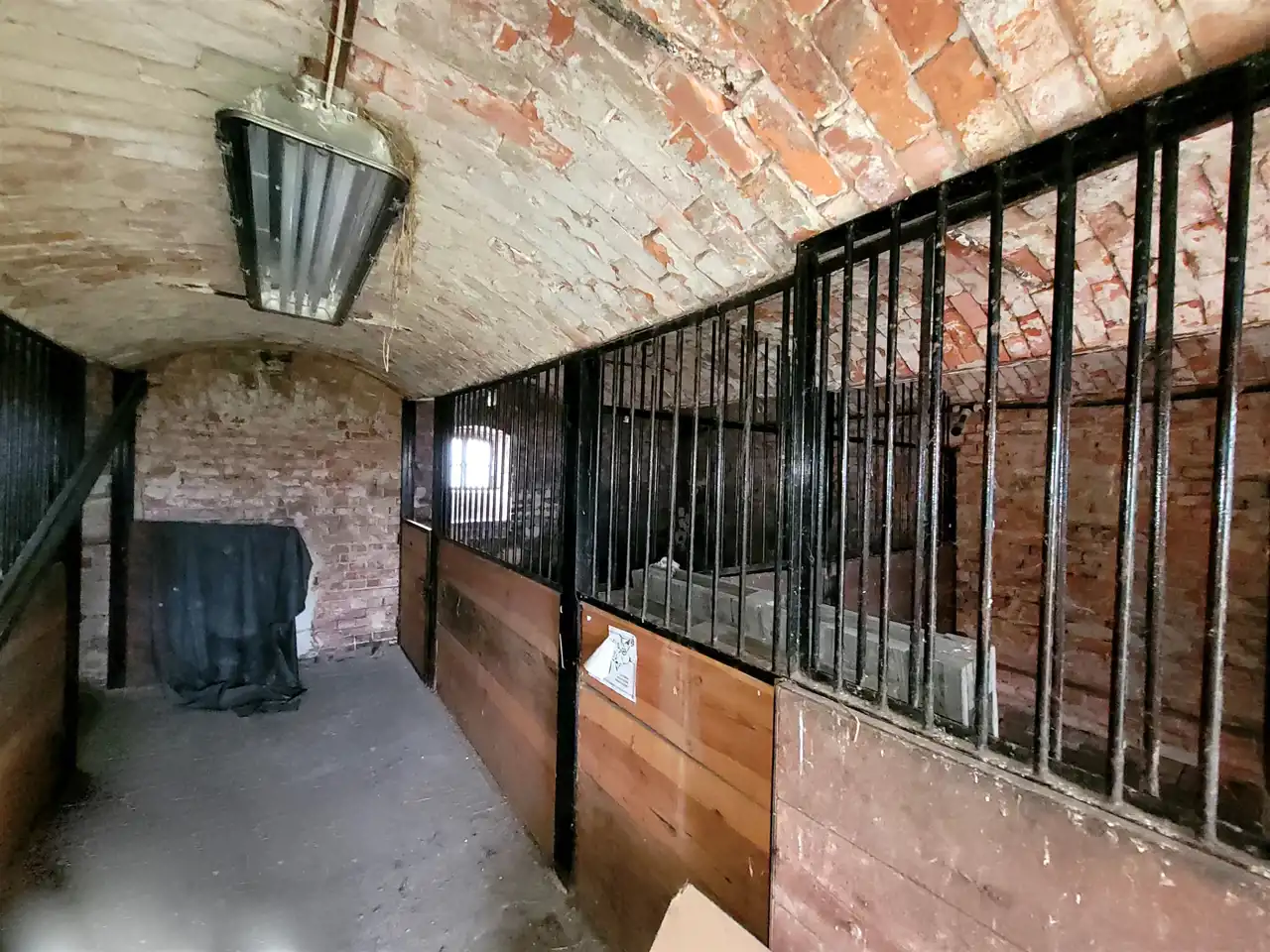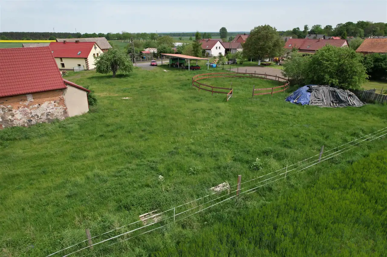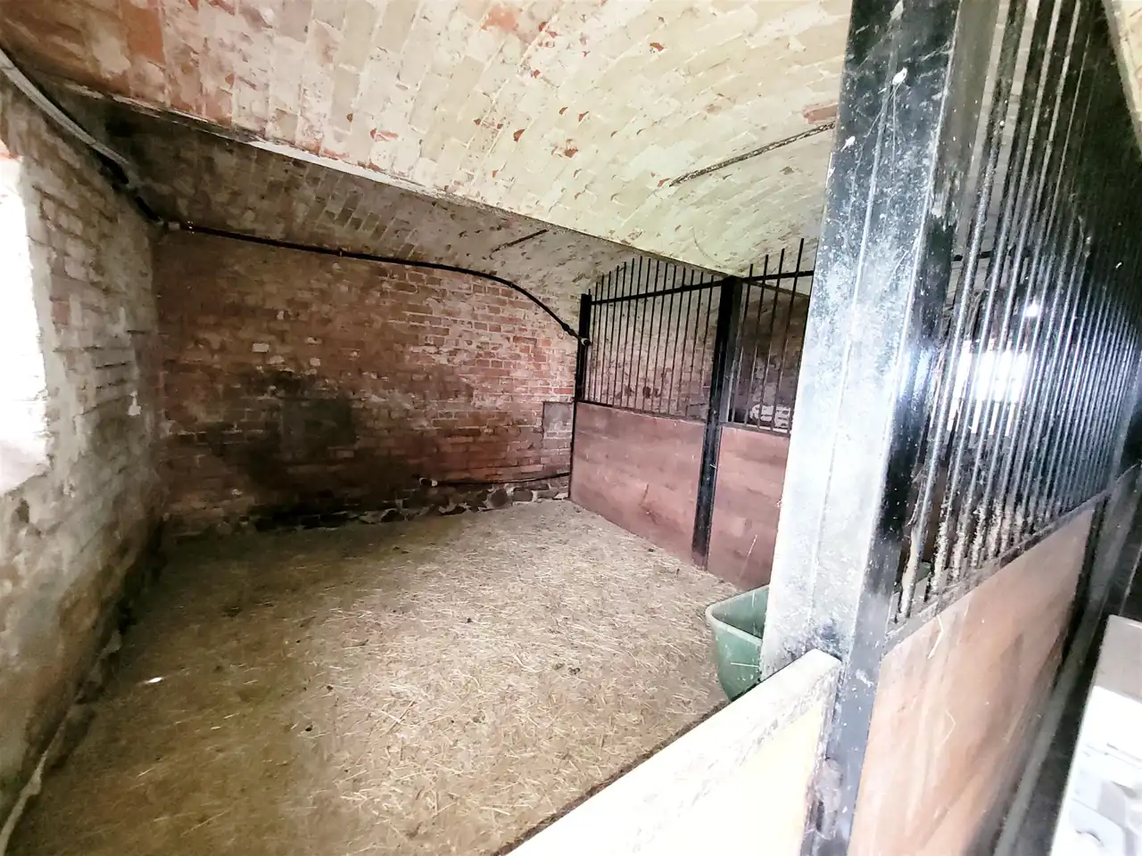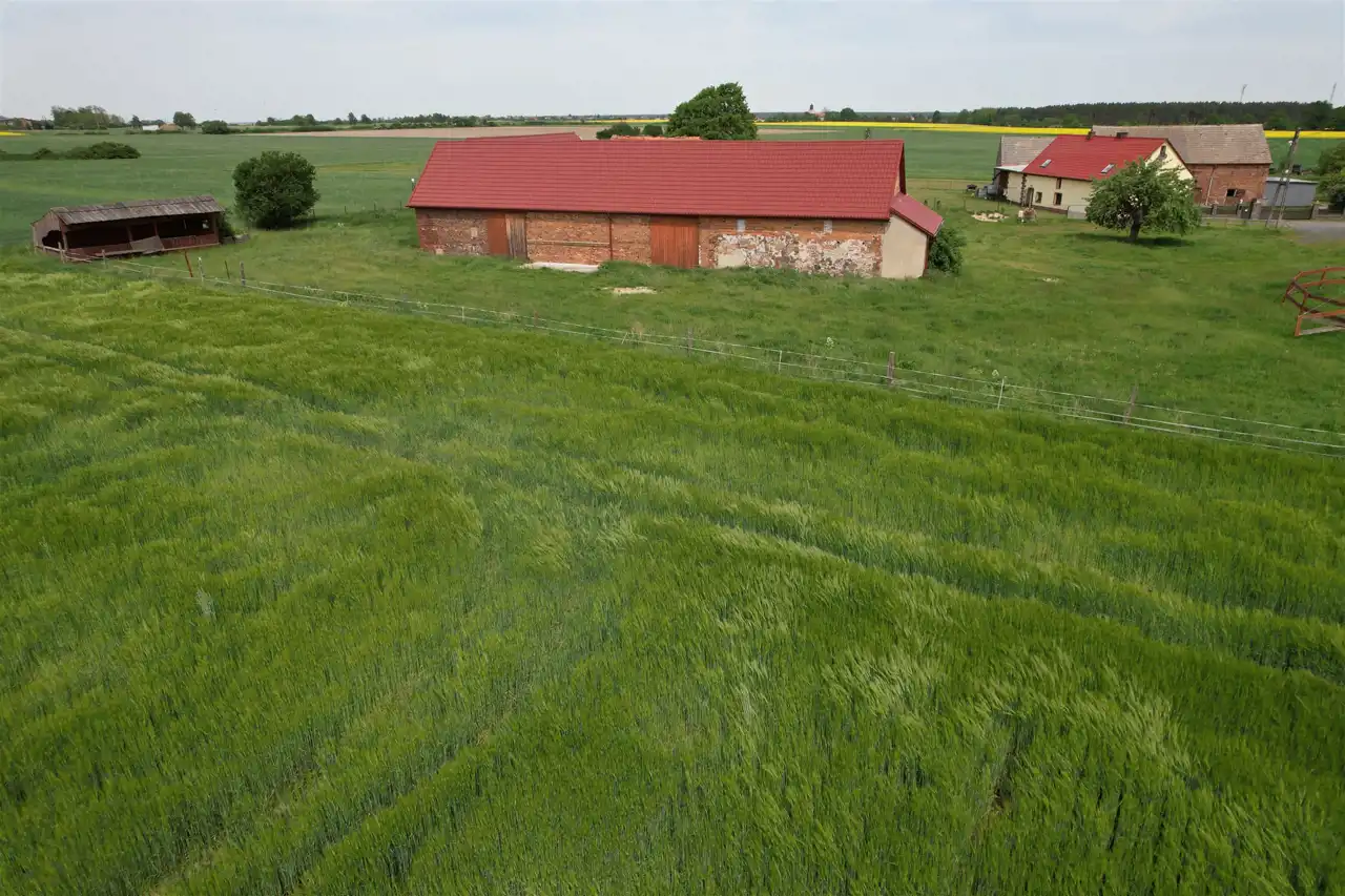 -3 murowane budynki gospodarcze - w tym dwie stajnie z boksami dla koni ( 100 m2 - 4 boksy i 64 m2 - 3 boksy) oraz budynek o pow. 223 m2 posiadający dwie duże bramy wjazdowe .