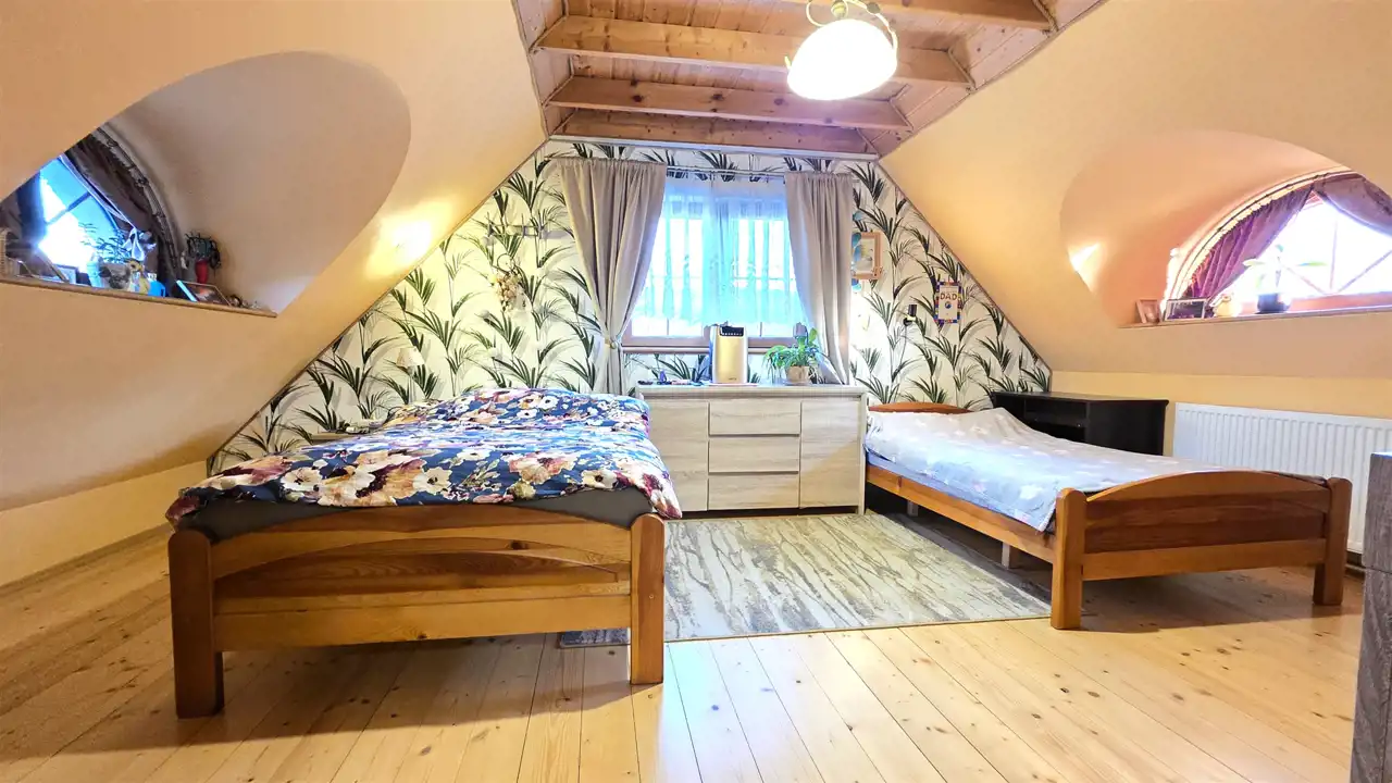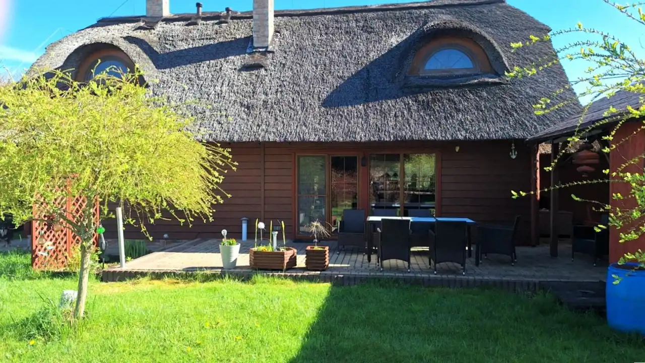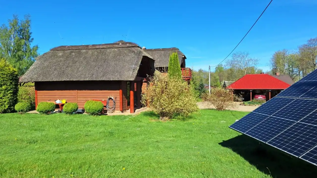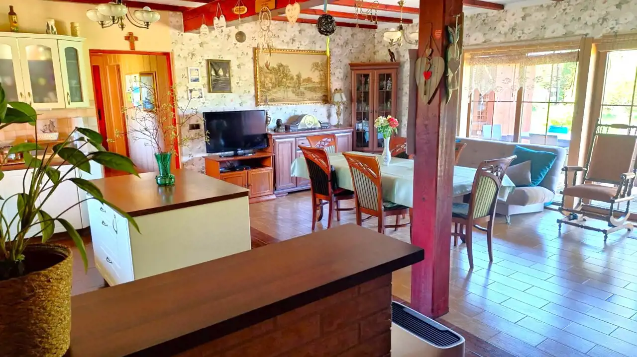 Nietuzinkowy dom wolnostojący dwukondygnacyjny w enklawie ciszy i spokoju o powierzchni całkowitej 235m2, użytkowej 153m2, położony w Borkowie Lęborskim (10km od gminnej miejscowości Choczewo). Usytuowany na ładnej ogrodzonej, zagospodarowanej, obsadzonej krzewami i drzewkami owocowymi działce o pow. 3040m2, na której znajduje się duża drewutnia (50m2), szklarnia, warsztat, wiata garażowa z miejscami na trzy samochody ze stryszkiem, garaż z agregatem prądotwórczym. Pierwsza kondygnacja składa się z wiatrołapu, spiżarni, holu, sypialni z łazienką z WC i prysznicem, przez którą dostaniemy się do pralni (z piecem trójfunkcyjnym i bojlerem elektrycznym bezobsługowym), przestronnego stylowego salonu dziennego połączonego z otwartą, widną kuchnią i wyjściem na ogród oraz częściowo zabudowany taras z pomieszczeniem przygotowanym pod saunę, korytarza prowadzącego do drewutni i na w/w ogród, drugiego salonu gościnnego (bawialnia). Na drugą kondygnacje prowadzą drewniane schody, gdzie usytuowane są dwie sypialnie, gabinet z wyjściem na balkon z widokiem na wjazd na posesję, garderoba oraz łazienka z WC i wanną. Na parterze zainstalowane jest ogrzewanie podłogowe, które regulowane jest przez elektroniczne termostaty. Do nieruchomości podłączona jest automatyczna oczyszczalnia ścieków, kolektory słoneczne oraz panele fotowoltaiczne (5,6kW), zapewniające wysoką energooszczędność. Dach budynku pokryty jest strzechą wykonaną z mazurskiej trzciny, z gwarancją wytrzymałości na 80 lat. Dom wzniesiony został opierając się o system kanadyjski. Wyposażony jest w alarm i monitoring, co zapewnia wysokie bezpieczeństwo mieszkańców. Reasumując całość prezentuje się ładnie. Parcela usytuowana jest 27km od Lęborka, 10km do brzegu morza, 25km do Łeby. Idealne miejsce dla tych, którzy chcą odpoczywać w ciszy na łonie czystej przyrody, w otulinie lasu, lubiących spacerować, uprawiać nordic walking, zbierać runo leśne, jeździć na rowerze oraz odpoczywać od zgiełku miejskiego. a w celach relaksowych planują "wypady" nad morze, czy też okoliczne jeziora (Choczewskie, Żarnowieckie czy Sarbsk – gdzie znajduje się baza Łebskiego Klubu Żeglarskiego i szkoła windsurfingu). Ze względu na położenie - otulina lasu i w/w atuty oferta jest godna polecenia.