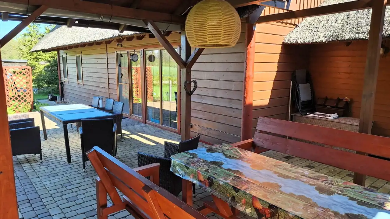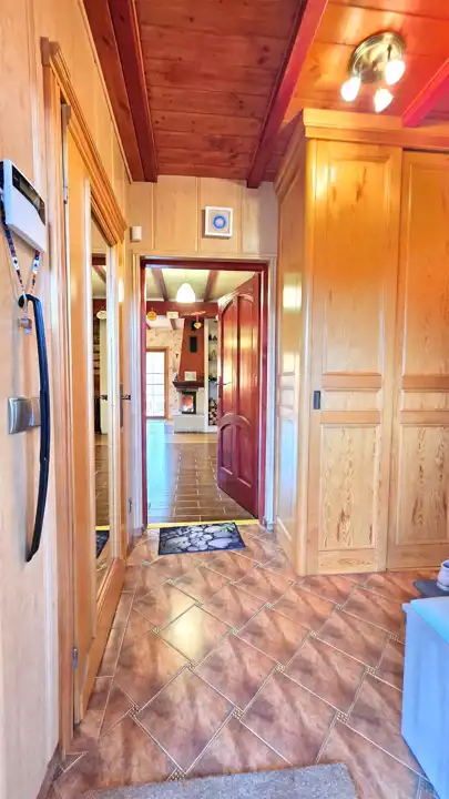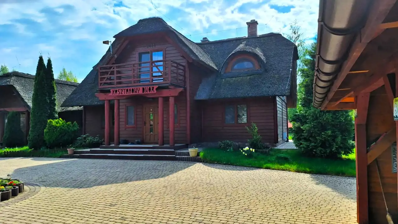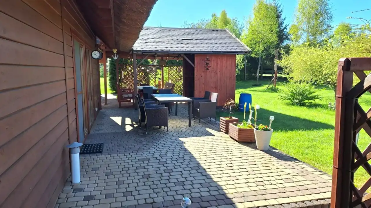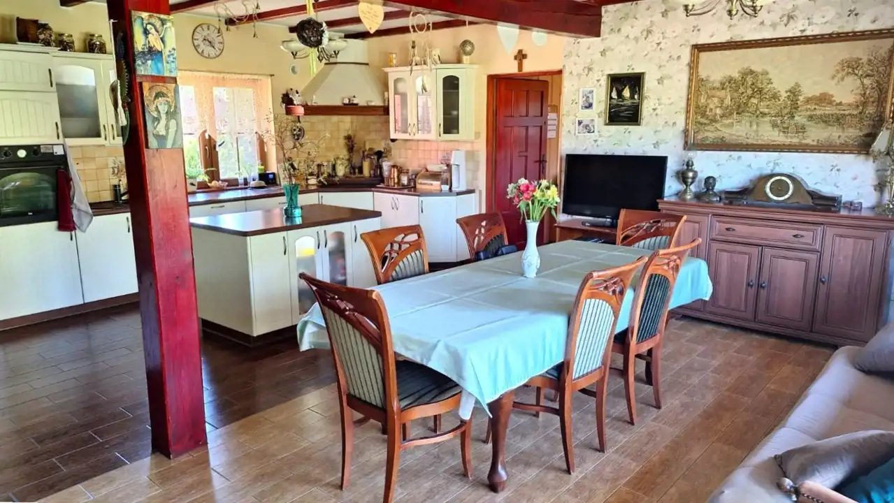 Nietuzinkowy dom wolnostojący dwukondygnacyjny w enklawie ciszy i spokoju o powierzchni całkowitej 235m2, użytkowej 153m2, położony w Borkowie Lęborskim (10km od gminnej miejscowości Choczewo). Usytuowany na ładnej ogrodzonej, zagospodarowanej, obsadzonej krzewami i drzewkami owocowymi działce o pow. 3040m2, na której znajduje się duża drewutnia (50m2), szklarnia, warsztat, wiata garażowa z miejscami na trzy samochody ze stryszkiem, garaż z agregatem prądotwórczym. Pierwsza kondygnacja składa się z wiatrołapu, spiżarni, holu, sypialni z łazienką z WC i prysznicem, przez którą dostaniemy się do pralni (z piecem trójfunkcyjnym i bojlerem elektrycznym bezobsługowym), przestronnego stylowego salonu dziennego połączonego z otwartą, widną kuchnią i wyjściem na ogród oraz częściowo zabudowany taras z pomieszczeniem przygotowanym pod saunę, korytarza prowadzącego do drewutni i na w/w ogród, drugiego salonu gościnnego (bawialnia). Na drugą kondygnacje prowadzą drewniane schody, gdzie usytuowane są dwie sypialnie, gabinet z wyjściem na balkon z widokiem na wjazd na posesję, garderoba oraz łazienka z WC i wanną. Na parterze zainstalowane jest ogrzewanie podłogowe, które regulowane jest przez elektroniczne termostaty. Do nieruchomości podłączona jest automatyczna oczyszczalnia ścieków, kolektory słoneczne oraz panele fotowoltaiczne (5,6kW), zapewniające wysoką energooszczędność. Dach budynku pokryty jest strzechą wykonaną z mazurskiej trzciny, z gwarancją wytrzymałości na 80 lat. Dom wzniesiony został opierając się o system kanadyjski. Wyposażony jest w alarm i monitoring, co zapewnia wysokie bezpieczeństwo mieszkańców. Reasumując całość prezentuje się ładnie. Parcela usytuowana jest 27km od Lęborka, 10km do brzegu morza, 25km do Łeby. Idealne miejsce dla tych, którzy chcą odpoczywać w ciszy na łonie czystej przyrody, w otulinie lasu, lubiących spacerować, uprawiać nordic walking, zbierać runo leśne, jeździć na rowerze oraz odpoczywać od zgiełku miejskiego. a w celach relaksowych planują "wypady" nad morze, czy też okoliczne jeziora (Choczewskie, Żarnowieckie czy Sarbsk – gdzie znajduje się baza Łebskiego Klubu Żeglarskiego i szkoła windsurfingu). Ze względu na położenie - otulina lasu i w/w atuty oferta jest godna polecenia.