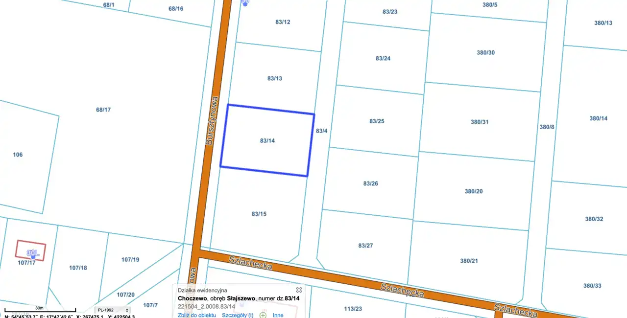 - dz.ew. nr 83/14 o powierzchni 1011 m2 w cenie 225 zł/m2