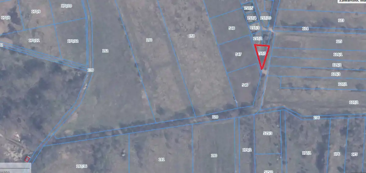 - Media Woda: brak; Kanalizacja: brak; Prąd: w ulicy; Gaz: brak