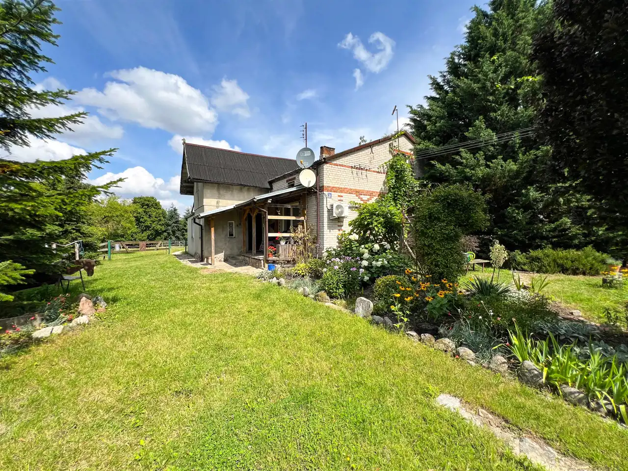 - Gotowa zabudowa: dom jednorodzinny i w pełni funkcjonalna stajnia dla koni.