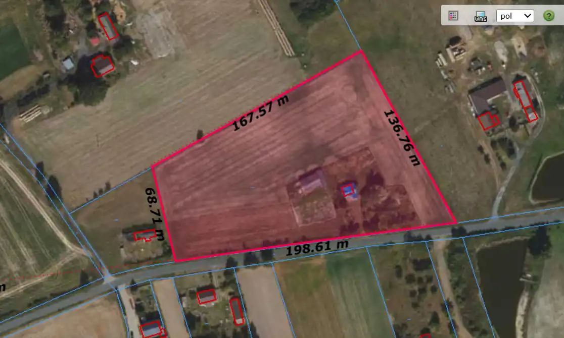 Powierzchnia nieruchomości - 1,8120 ha. Kształt i przybliżone wymiary na rzucie.