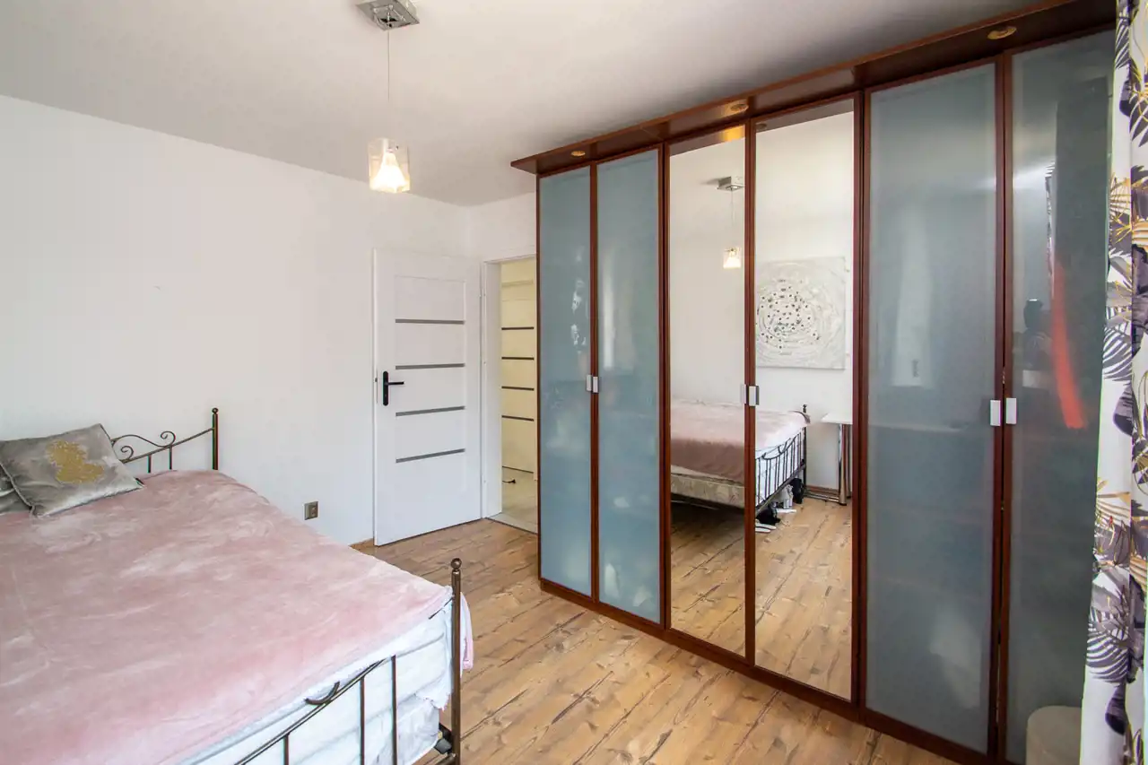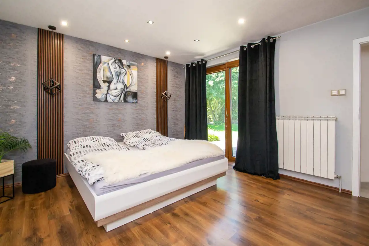 główna sypialnia z wyjściem na ogród o pow. 18m2