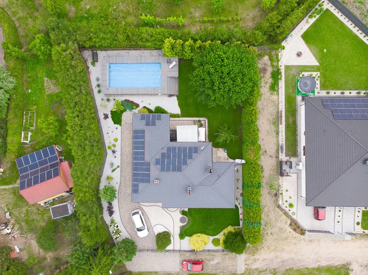Dom w pełni bezobsługowy o niskich kosztach utrzymania: ogrzewanie - pompa ciepła oraz panele fotowoltaiczne SolarEdge o mocy 9,99KW.