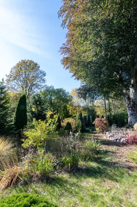 Całość usytuowana jest na dużej działce o powierzchni 1645 m², która została częściowo zaaranżowana zasadzoną roślinnością, a uroku dodaje duże, majestatyczne dębowe drzewo tuż przy altance.