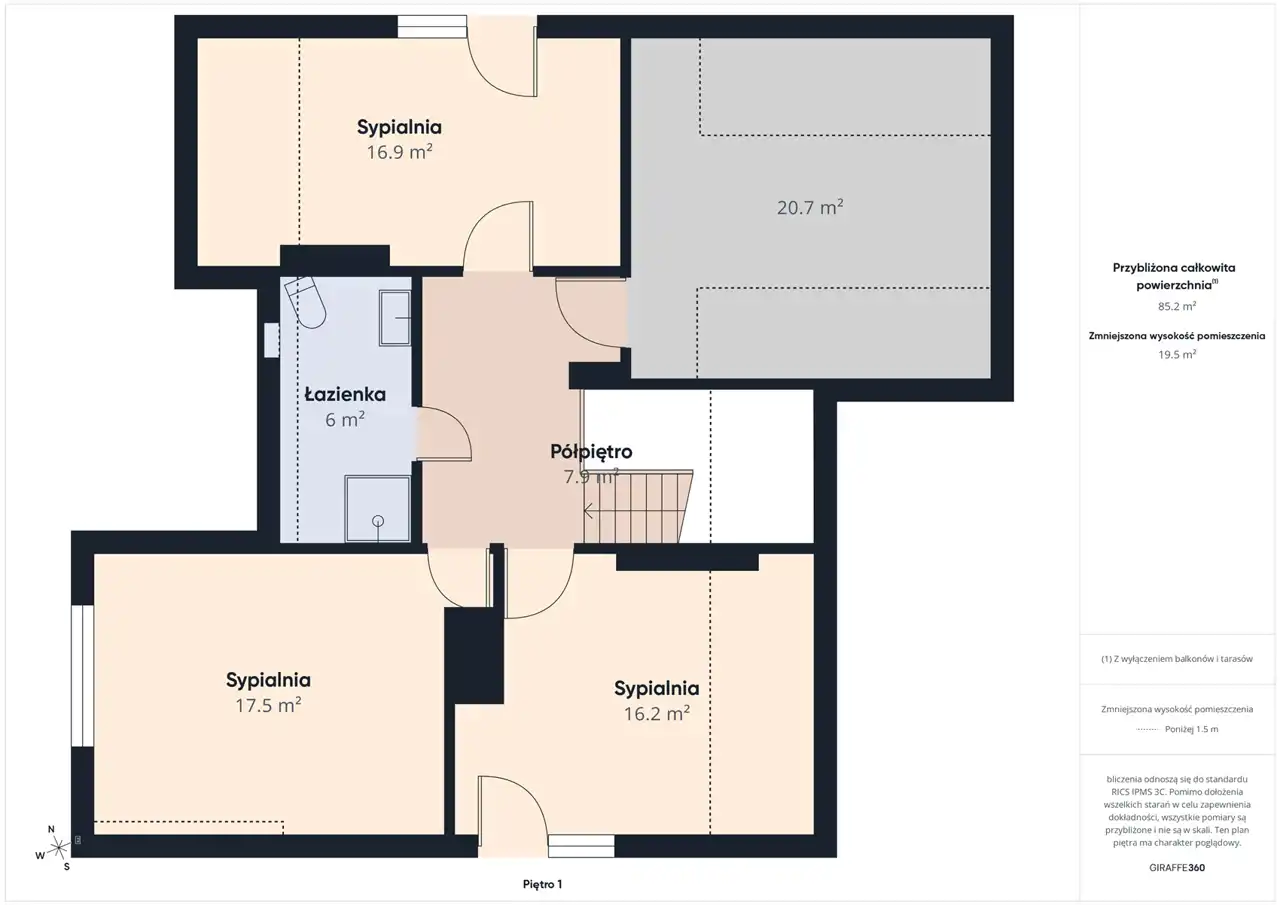 3 sypialnie o pow. 17,5 m2 / 16,9 m2 / 16,2 m2 w tym 2 z własnymi balkonami