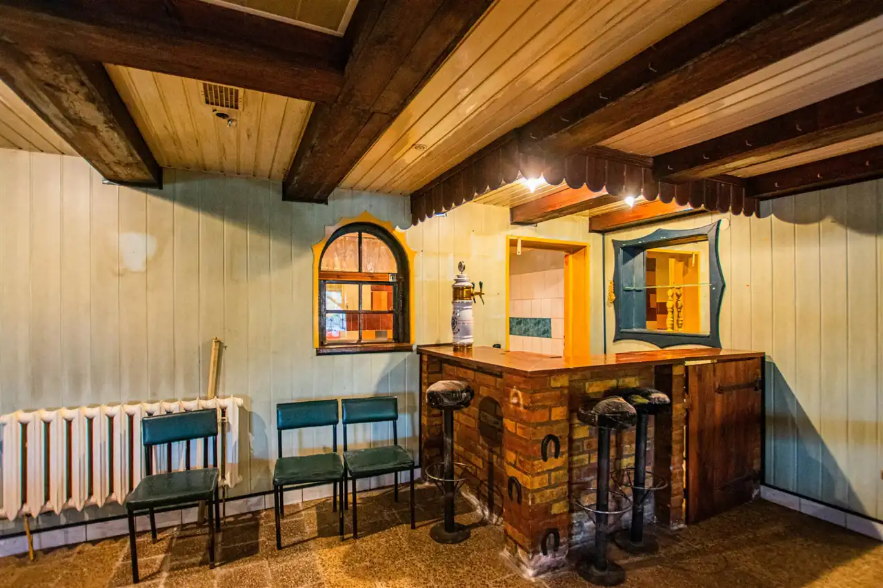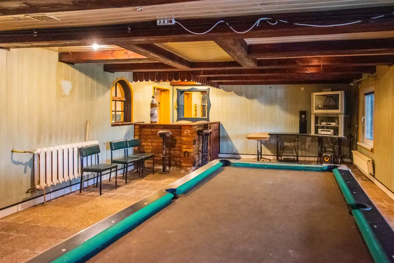 Z przodu budynku weranda o powierzchni 39 m2 ogrodzona kamienno - drewnianym ogrodzeniem idealna na strefę relaksu. Istnieje wiele możliwości wykorzystania lokalu: jako mieszkalny bądź na działalność gospodarczą usługową.
