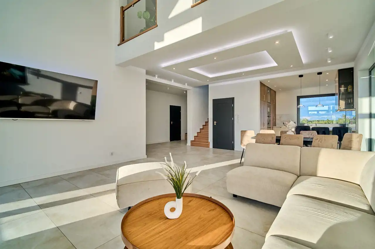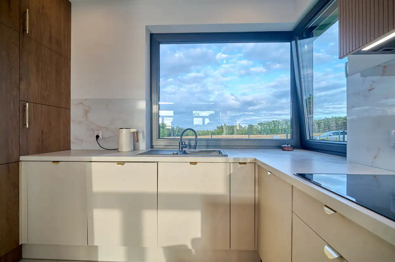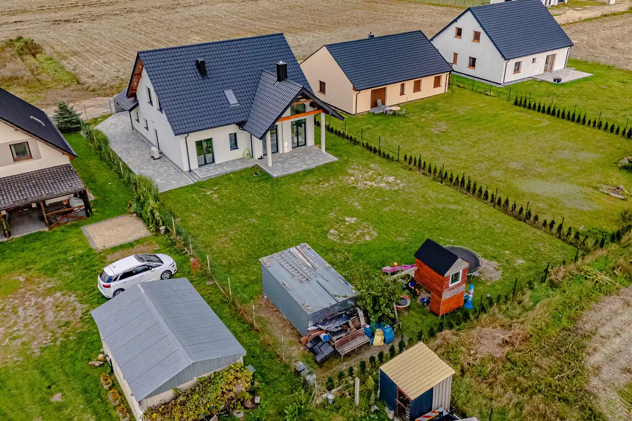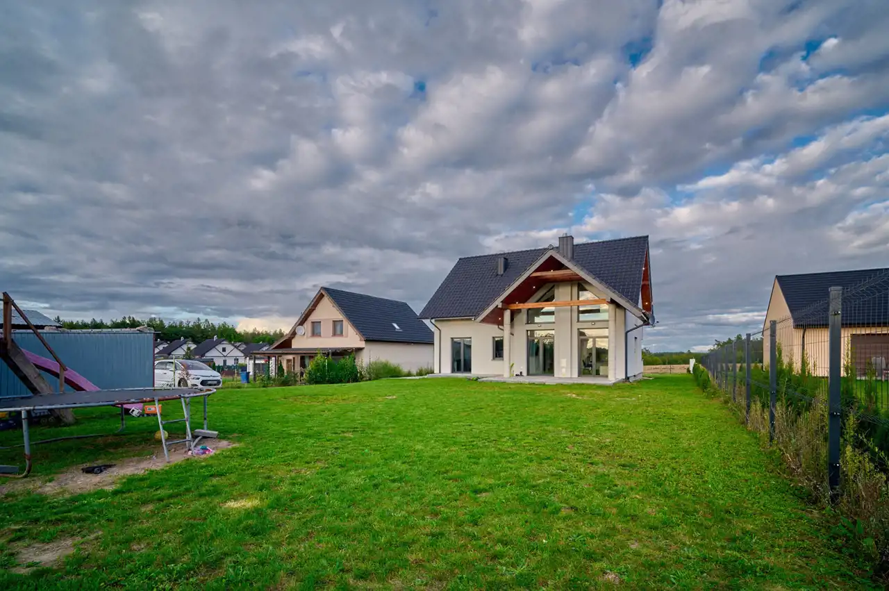 Dom jest doskonałą propozycją dla młodych osób poszukujących nowoczesnych i funkcjonalnych rozwiązań, a jednocześnie zależy im na niskich kosztach utrzymania. Nieruchomość wyróżnia się nie tylko wysokim standardem wykonania, lecz także lokalizacją – Rataje, gmina Chodzież – w otoczeniu lasów i jezior, z dogodnym dostępem do infrastruktury miejskiej.