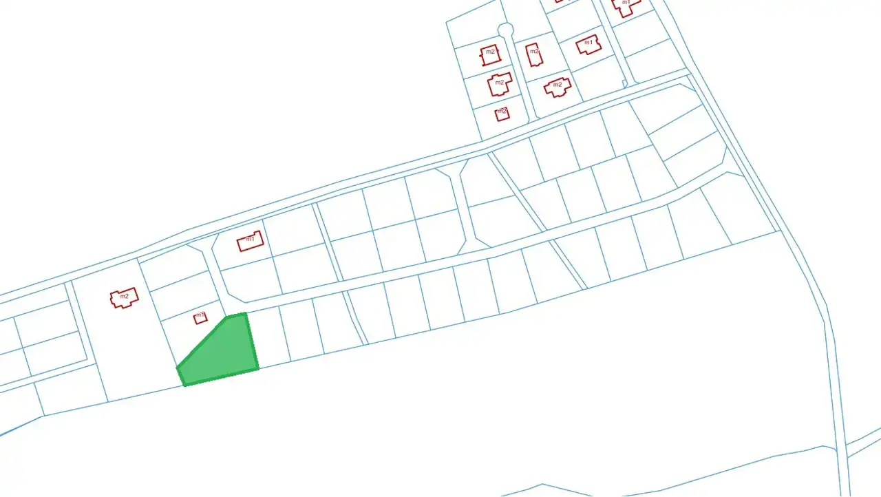 Działka o nieregularnym kształcie, narożnikowa, nieogrodzona.