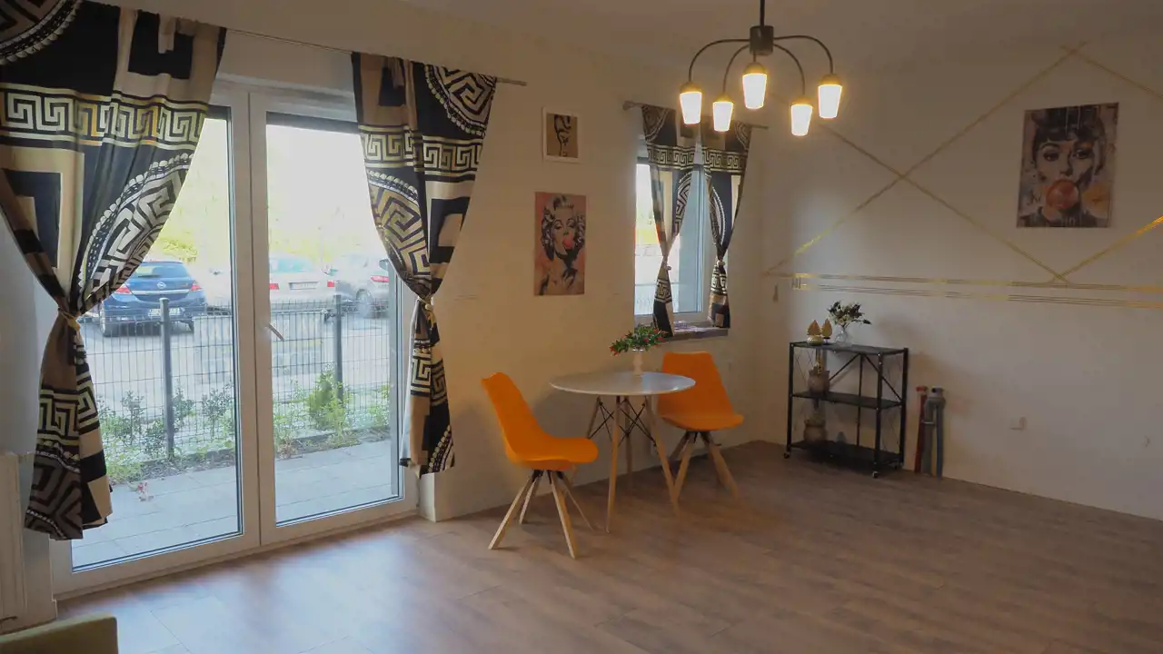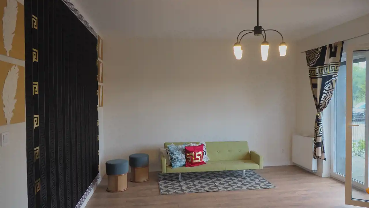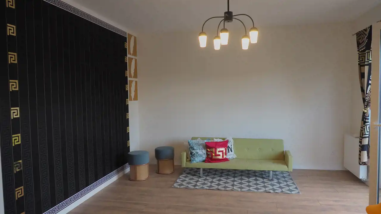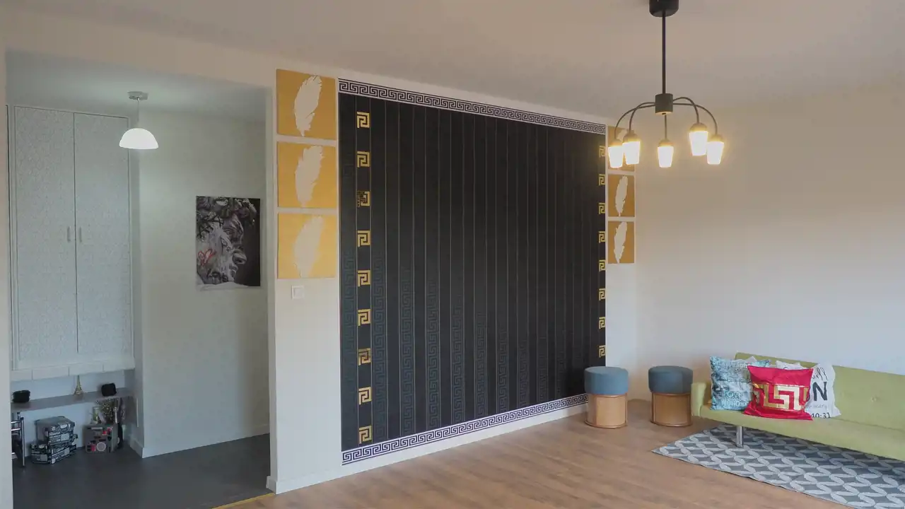 Mieszkanie w większości wykończone, w salonie ściany gipsowane częściowo w tapecie , na podłodze panele, miejsce na aneks kuchenny, bez zabudowy i sprzętu AGD, do własnej aranżacji.