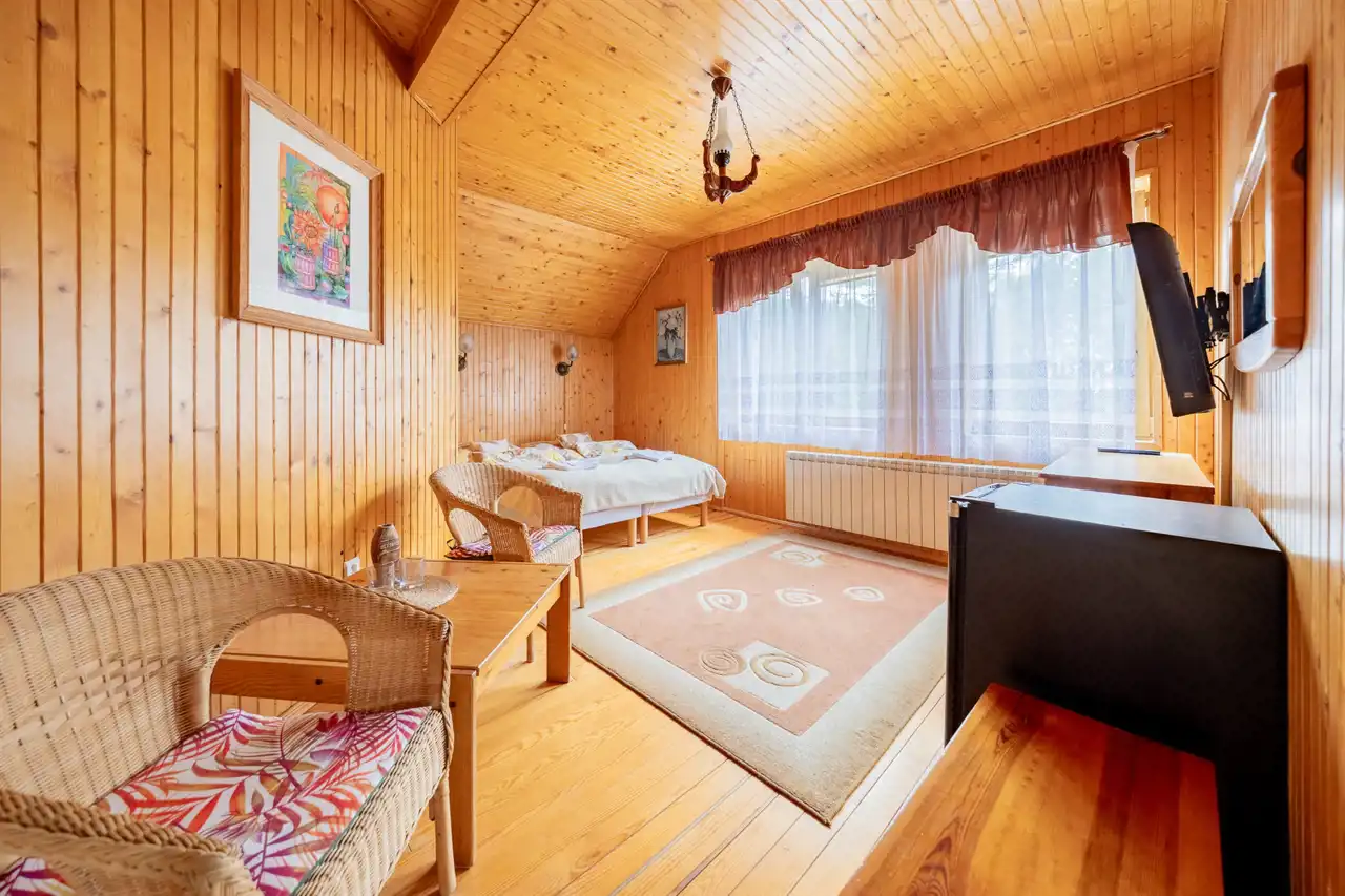 - 8 pokoi dwuosobowych z łazienkami