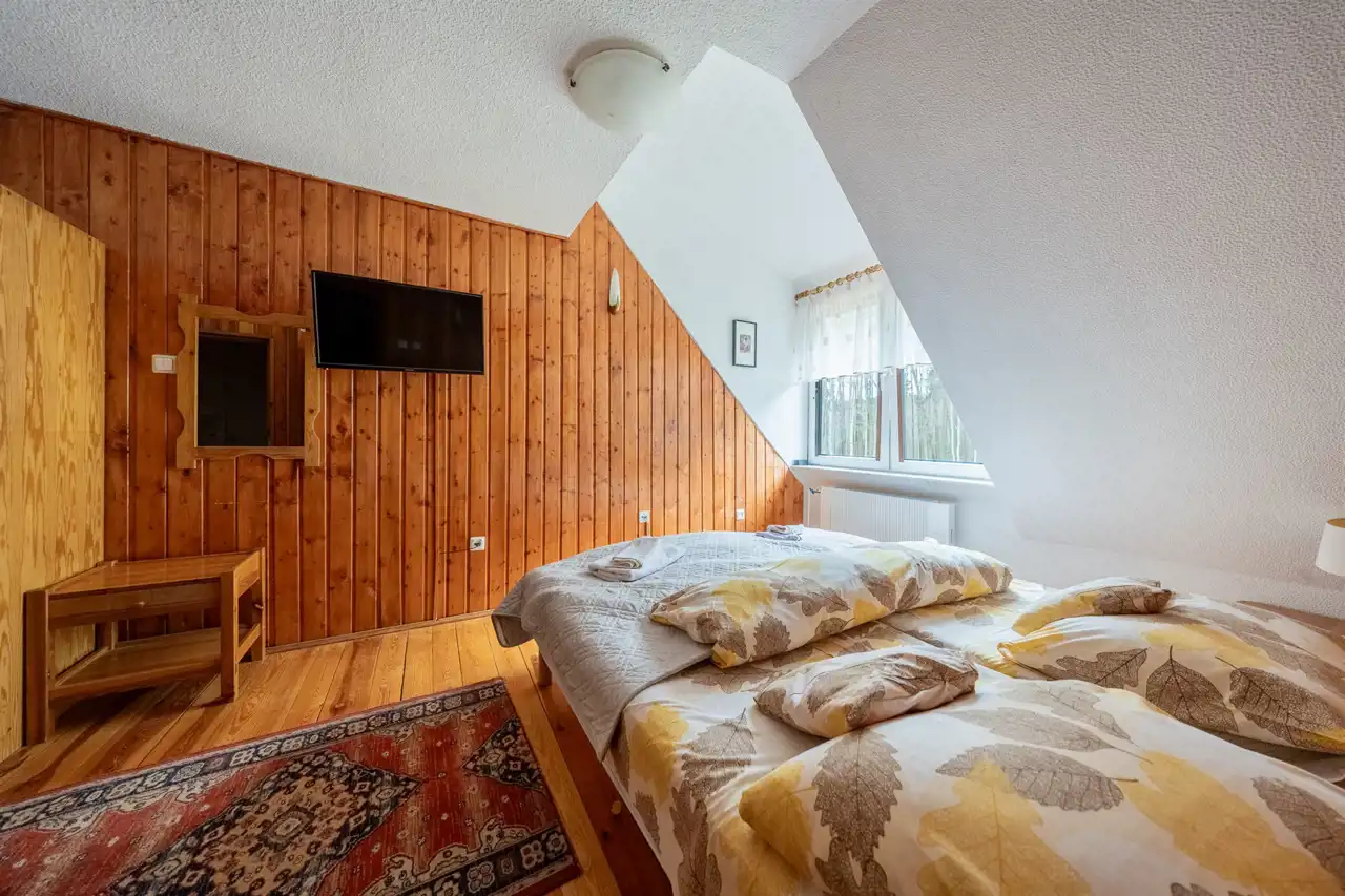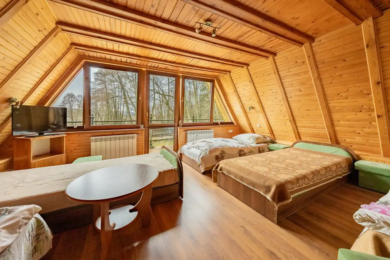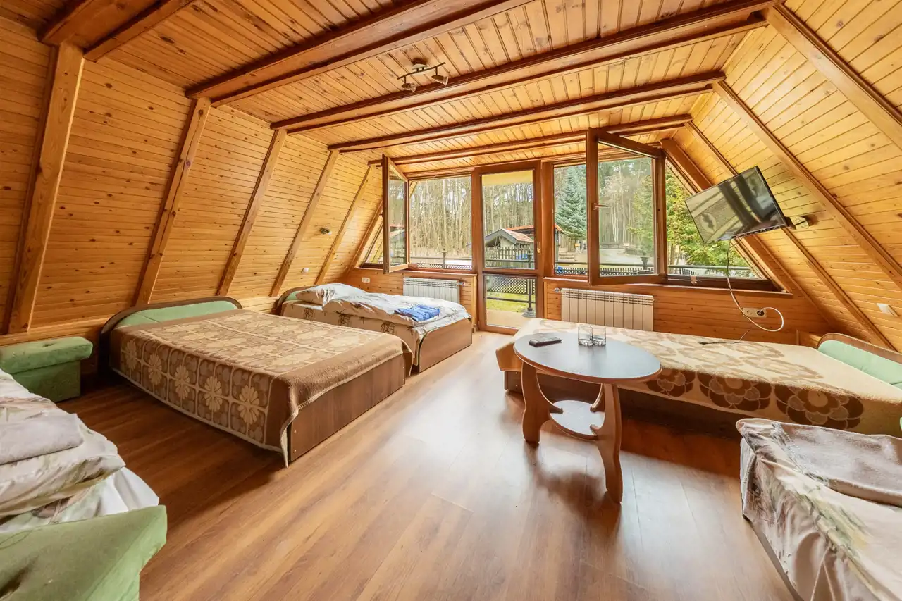 - 1 pokój 4 osobowy z łazienką na poddaszu
