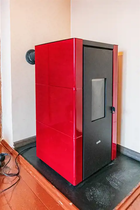 Ogrzewanie własne - kocioł na pellet oraz piece kaflowe.