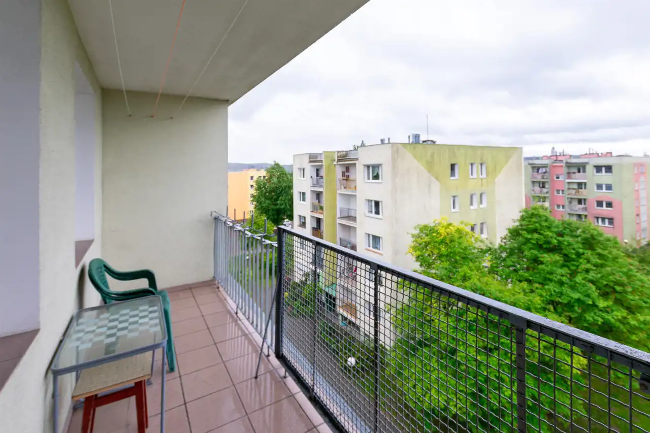 Mieszkanie na IV piętrze w bloku położonym w sąsiedztwie Jeziora Chodzieskiego.