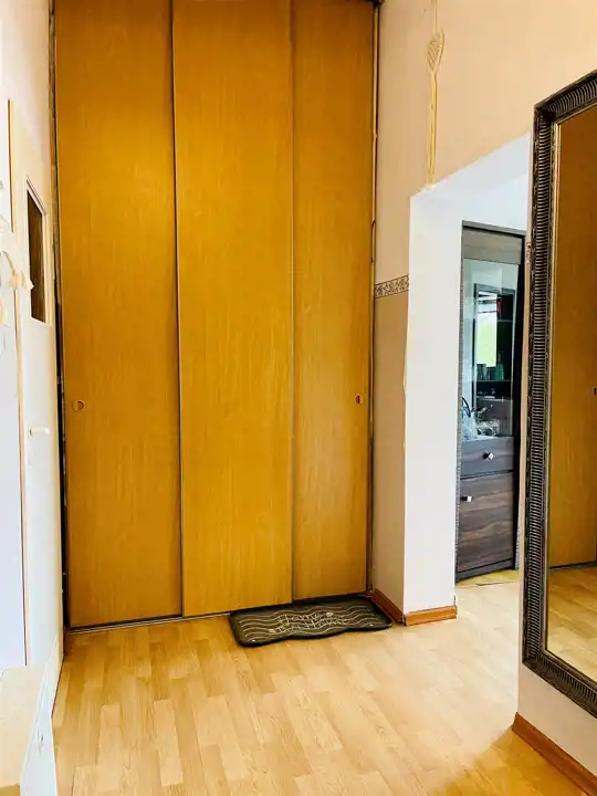 w przedpokoju znajdują się dwie duże szafy w zabudowie,