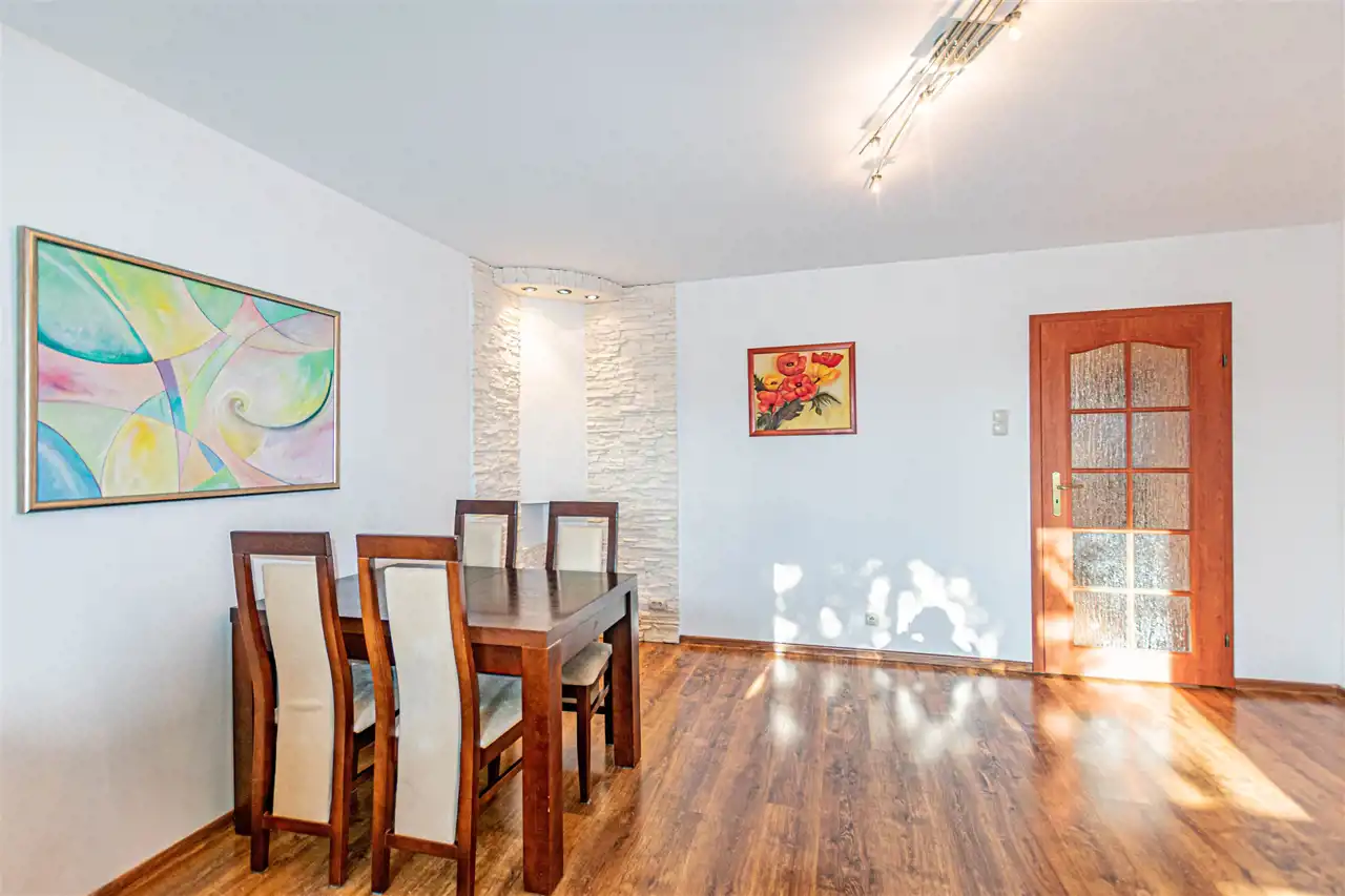 Mieszkanie jest bardzo słoneczne i ustawne, a układ pomieszczeń zapewnia wygodę życia codziennego.