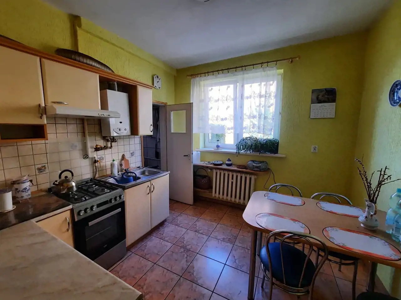 Ogrzewanie centralne, piec węglowy i na drewno. Ciepła woda piecyk gazowy zainstalowany w kuchni.