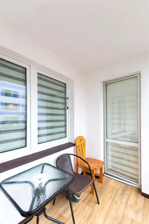 - Okna PCV, na oknach rolety wewnętrzne dzień-noc