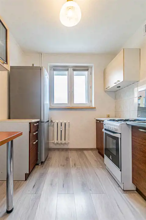 Kuchnia wyposażona w meble kuchenne + sprzęt AGD - lodówko-zamrażarka, gazówka wolnostojąca.