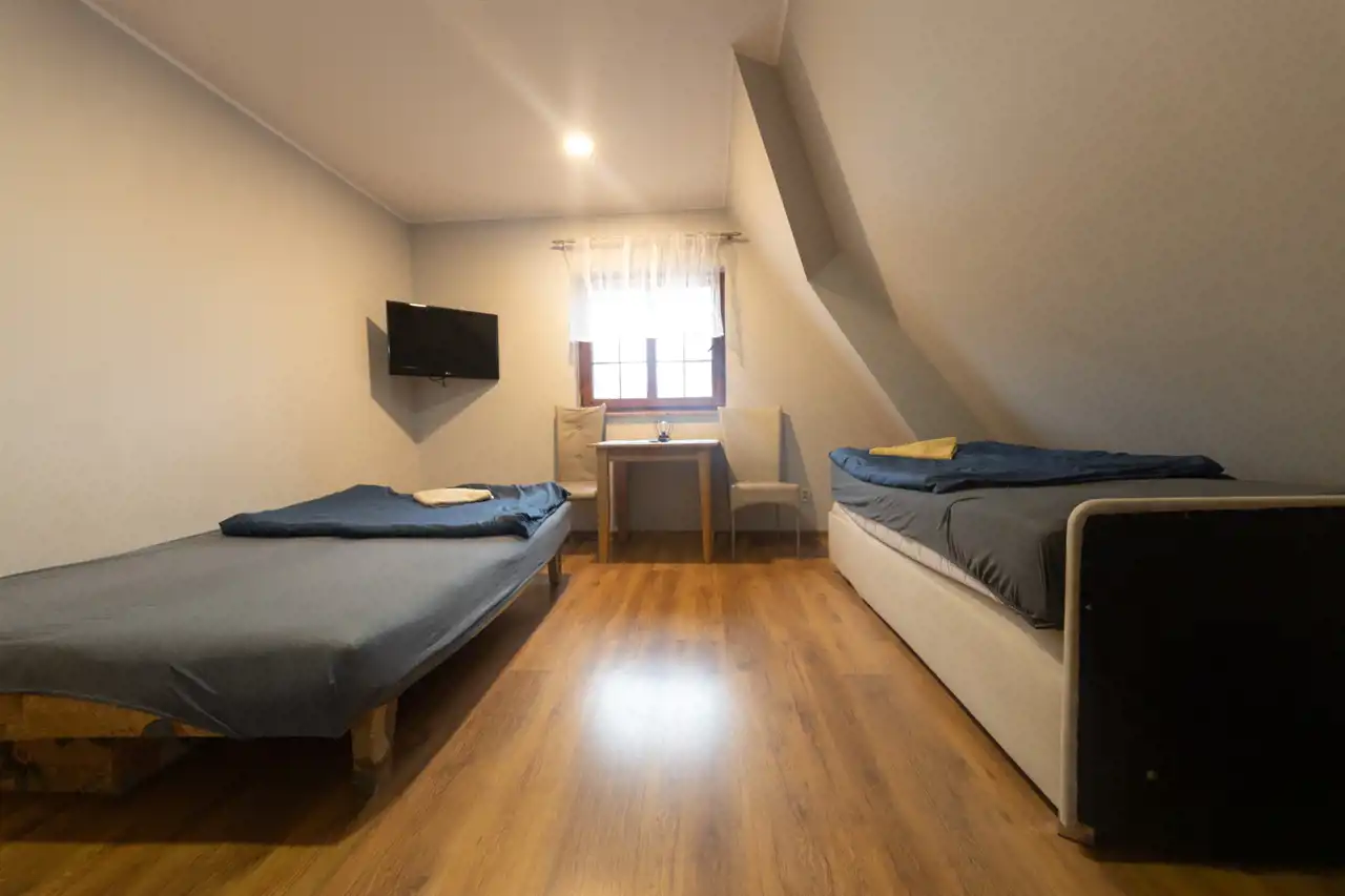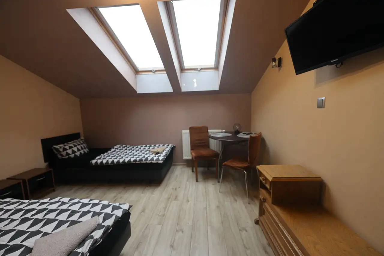 Obiekt dysponuje 22 pokojami o zróżnicowanej wielkości, z nowoczesnymi łazienkami, co zapewnia komfortowy pobyt gości. Dodatkowo, w obiekcie znajdują się trzy w pełni wyposażone aneksy kuchenne, umożliwiające samodzielne przygotowanie posiłków. W skład nieruchomości wchodzi także oddzielne mieszkanie jednopokojowe z kuchnią oraz łazienką, co stanowi doskonałe rozwiązanie dla właściciela lub pracowników.