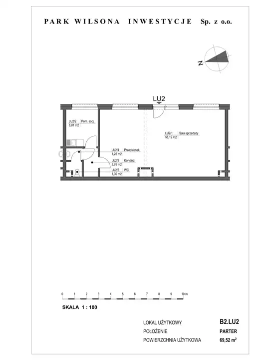 Oferujemy na sprzedaż ostatni dostępny lokal użytkowy o powierzchni 69,52 m², usytuowany na parterze nowoczesnego budynku przy ul. Wilsona 19 w Chojnie, na nowo powstającym osiedlu u zbiegu ulic Wilsona i Dworcowej.