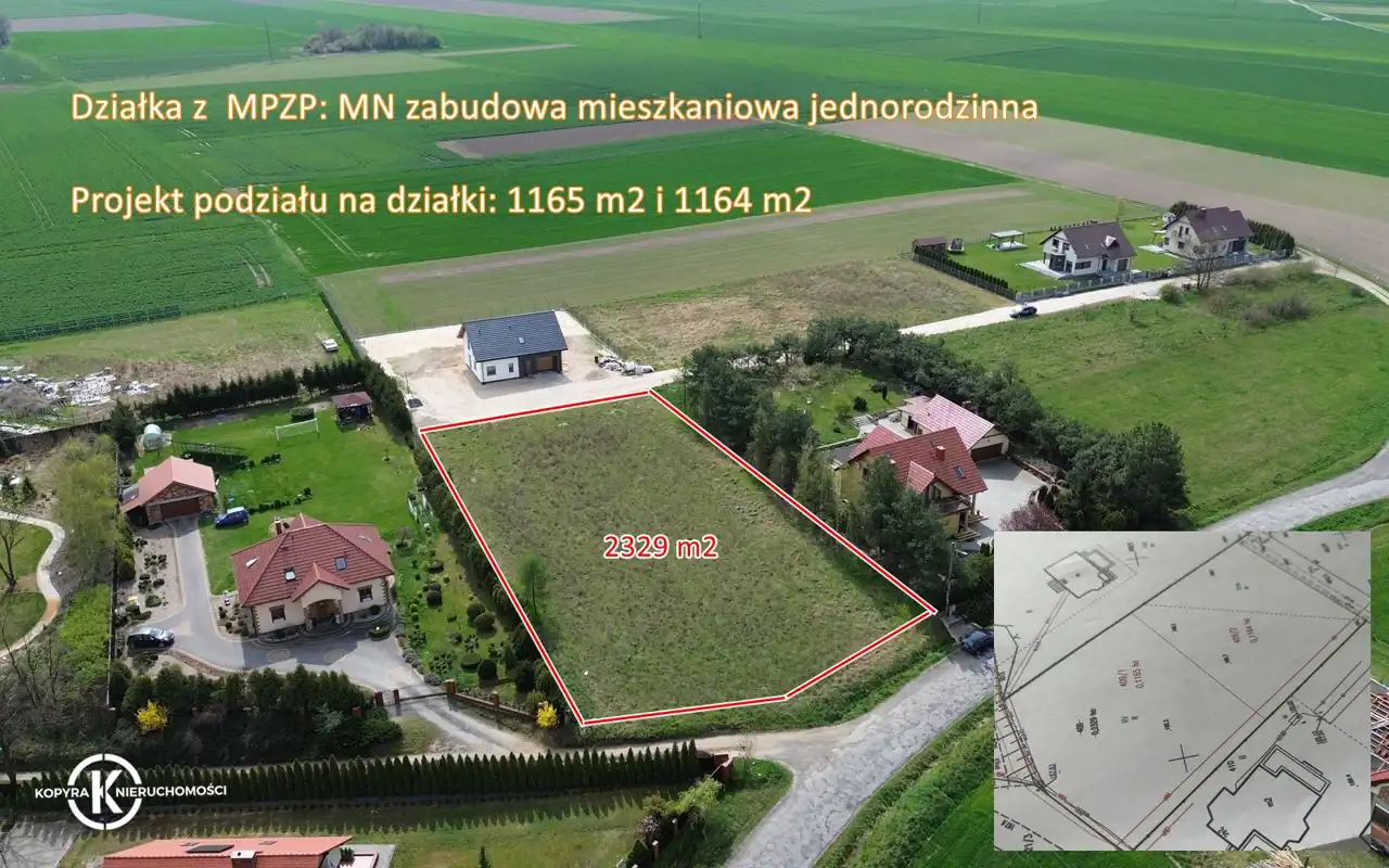 W CENIE projekt podziału na dwie działki o powierzchniach odpowiednio 1165m2 oraz 1164 m2 !!!