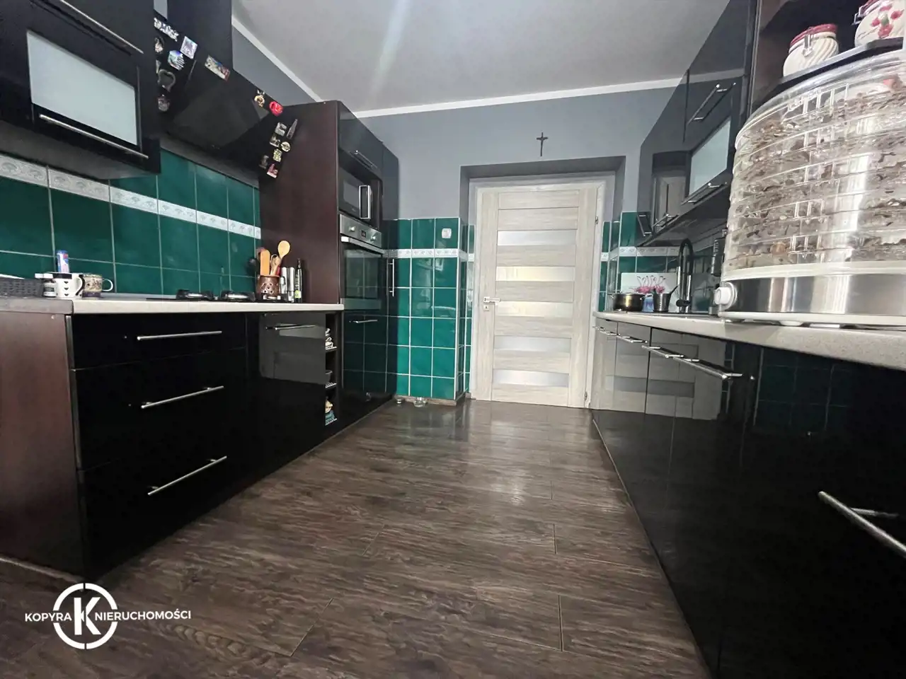 Biuro wyceny i obrotu nieruchomości- kuchnia wyposażona w meble oraz sprzęt AGD: płyta, piekarnik, okap, zmywarka, mikrofalówka oraz lodówka