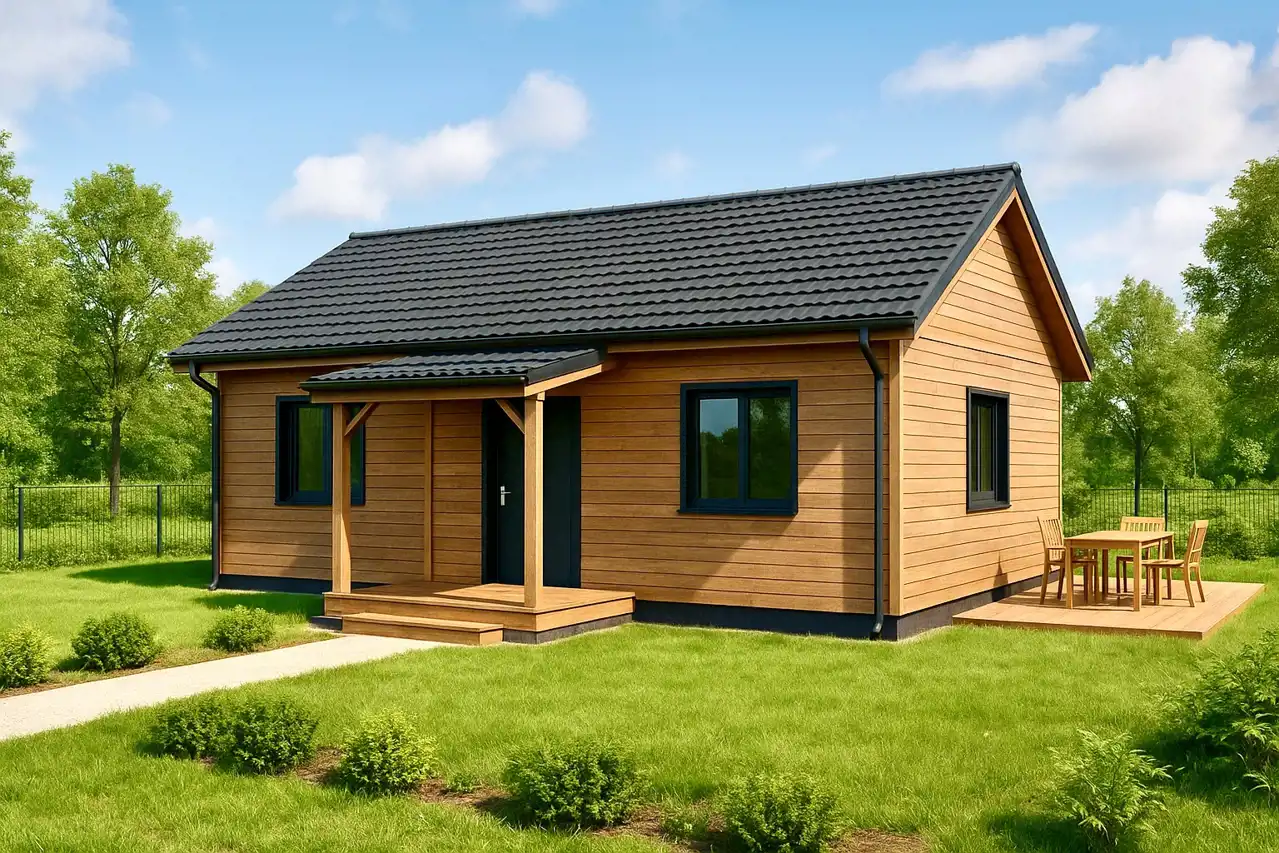 Na pierwszym zdjęciu przedstawiona wizualizacja domku letniskowego, który jest zgodny z wytycznymi MPZP.
