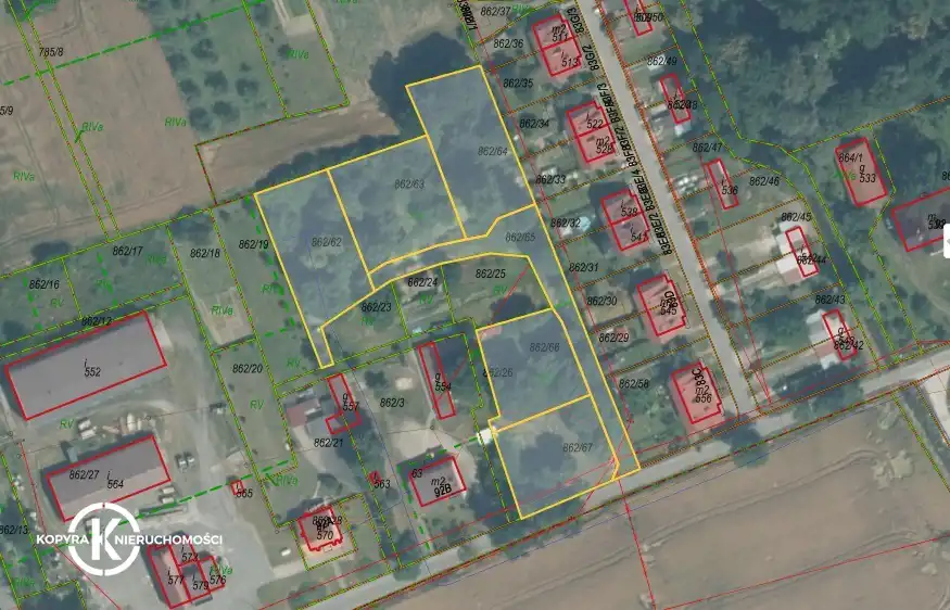 - działka nr 862/62 o pow. 1200 m2