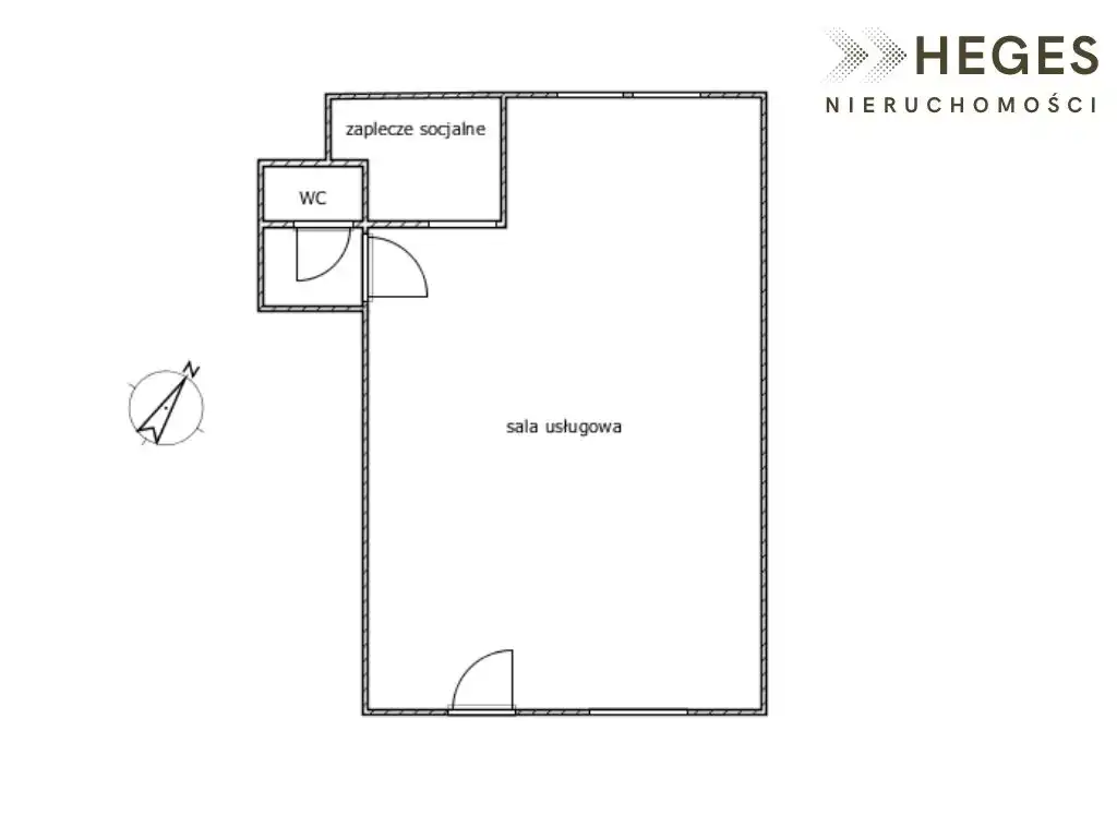 - układ: główna sala usługowa, zaplecze socjalne, toaleta z WC,