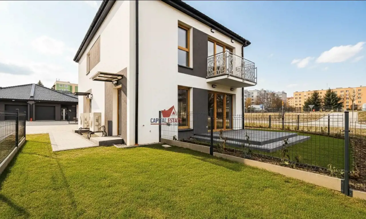 Nieruchomość wykończona w wysokim standardzie, z wykorzystaniem nowoczesnych i energooszczędnych rozwiązań. Ściany z keramzytobetonu, dach pokryty dachówką ceramiczną, okna PCV trzyszybowe oraz elektryczne rolety zewnętrzne zapewniają komfort i trwałość na lata.