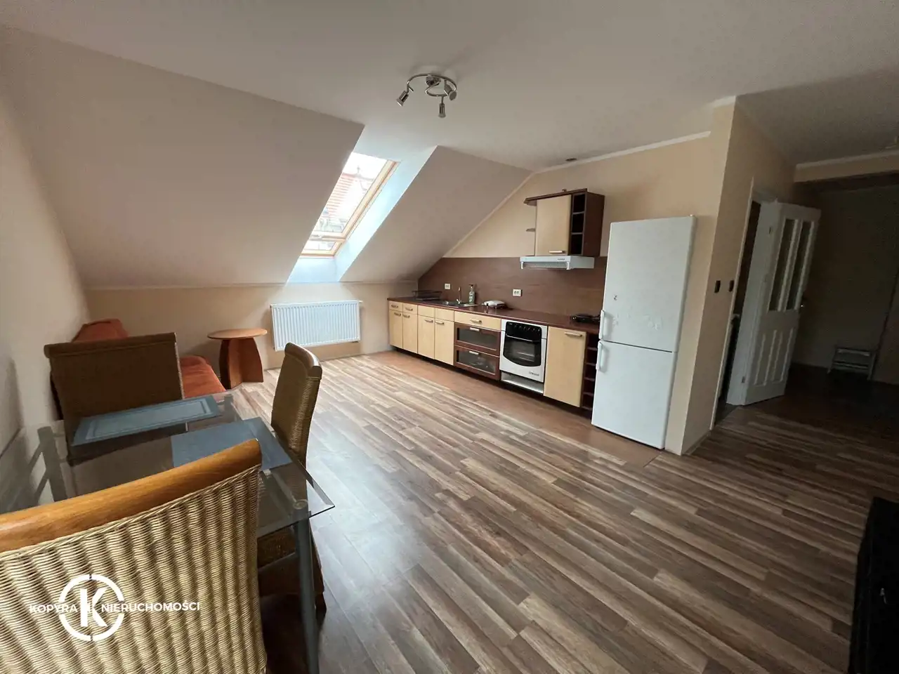 Lokal usytuowany na 2-pietrze, składa się z pokoju dziennego z aneksem kuchennym, dużej łazienki oraz przedpokoju, na wyposażeniu min. umeblowany aneks kuchenny, sprzęt AGD (piekarnik, lodówka, pralka, okap, płyta grzewcza), wypoczynek oraz sprzęt RTV.