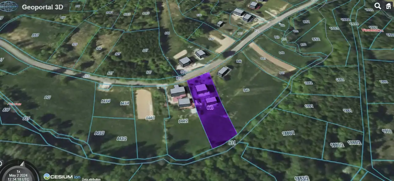 - Działka częściowo zagospodarowana, lekko nachylona, prostokąt