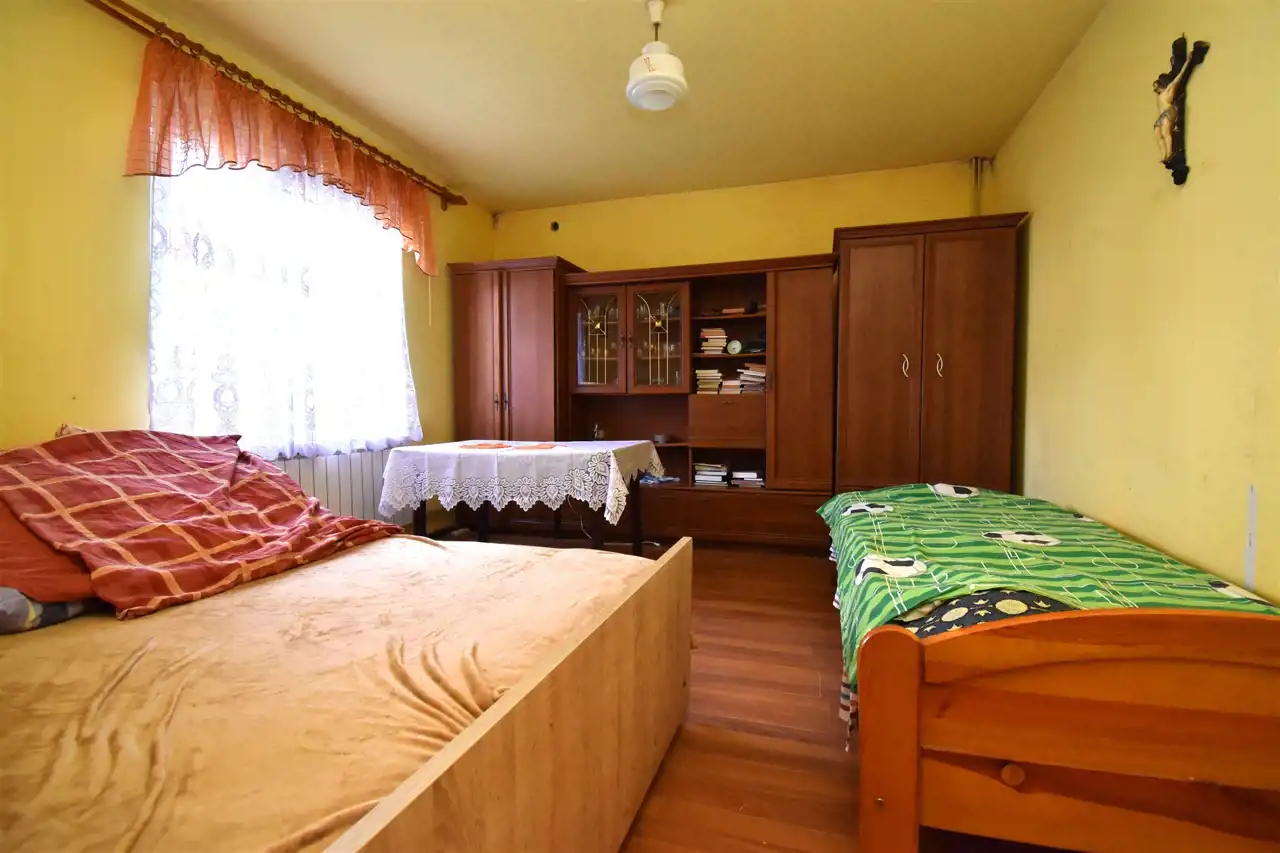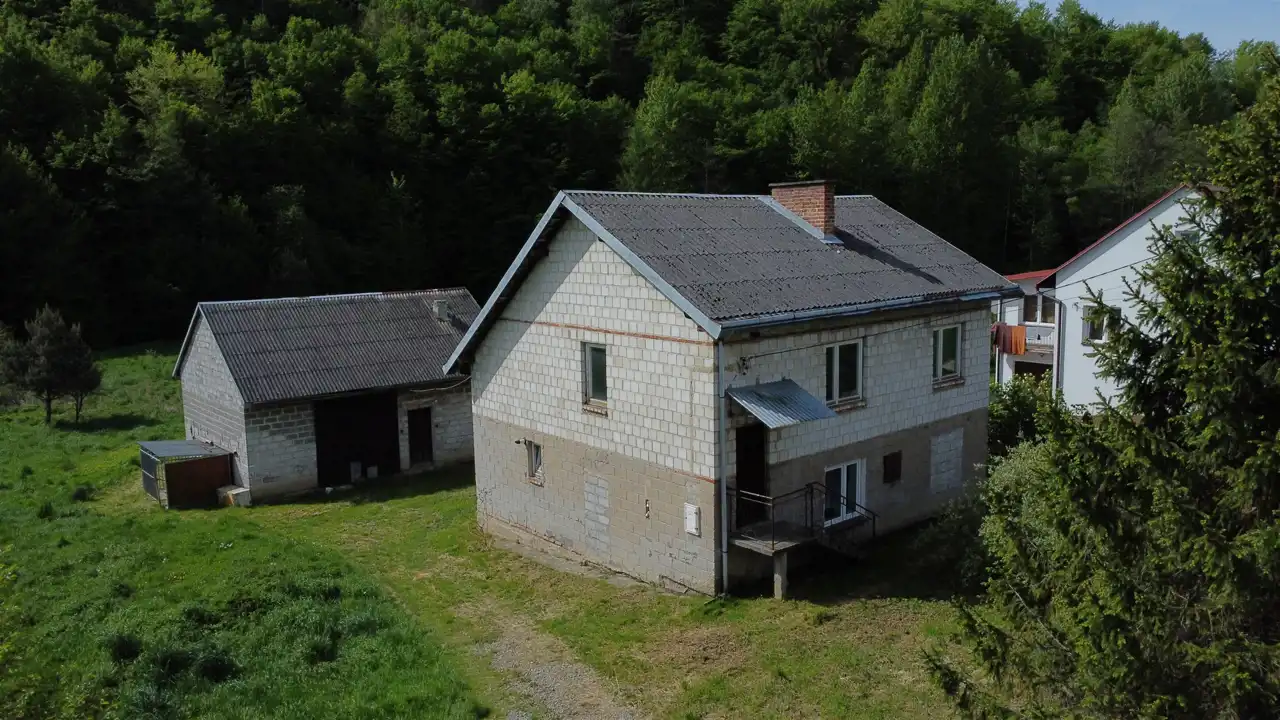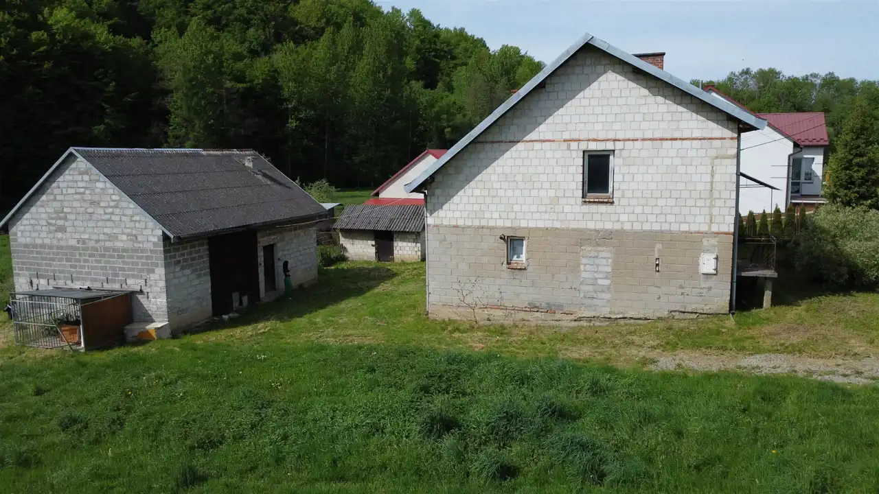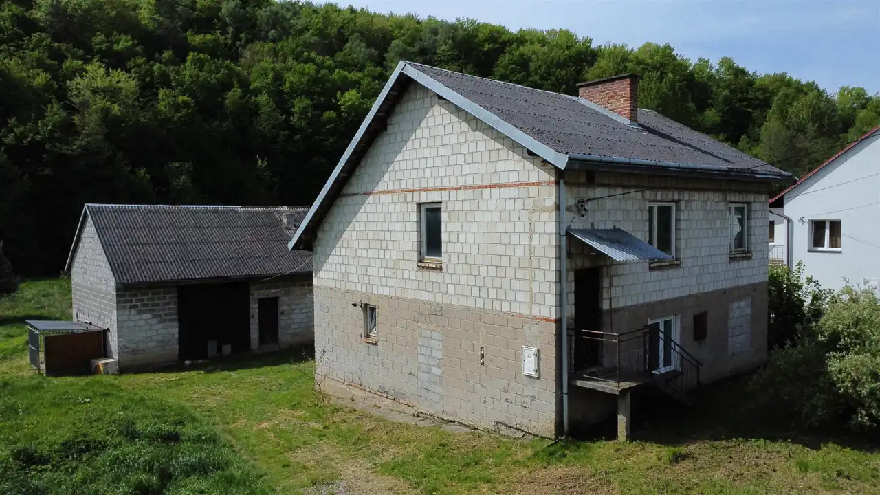 Budynek mieszkalny, murowany, dwukondygnacyjny, wolnostojący z poddaszem do adaptacji, częściowo podpiwniczony, wybudowany w latach 80-tych, usytuowany przy drodze gminnej.