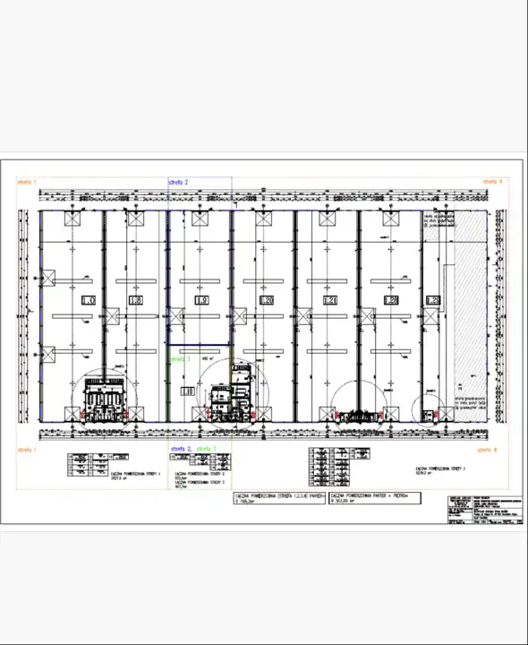 Rozkład pomieszczeń: hala główna, według potrzeb pomieszczenia biurowe, socjalne i sanitarne.
