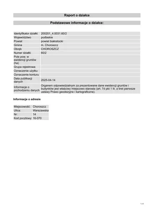 Działka inwestycyjna na sprzedaż – Choroszcz, ul. Warszawska