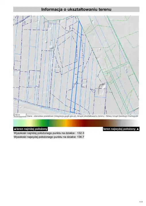 Powierzchnia: ok. 6000 m² – regularny kształt, teren częściowo zalesiony i zagospodarowany