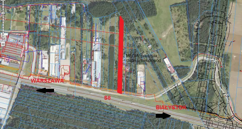 Powierzchnia: ok. 6000 m² | Zabudowa mieszkaniowa + potencjał komercyjny | Bezpośredni zjazd z S8 | Doskonała lokalizacja przy głównej trasie | Media na działce
