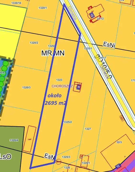 Obszar o powierzchni ok.2695 m2 znajduje się na terenie, objętym MPZP - przewidziana jest tam zabudowa mieszkaniowa jednorodzinna i zagrodowa (MN, MR) .