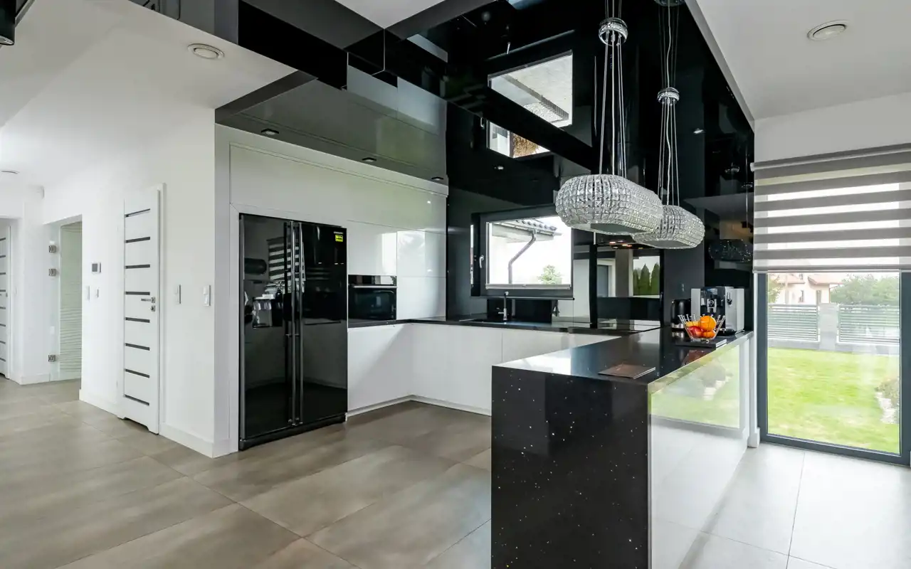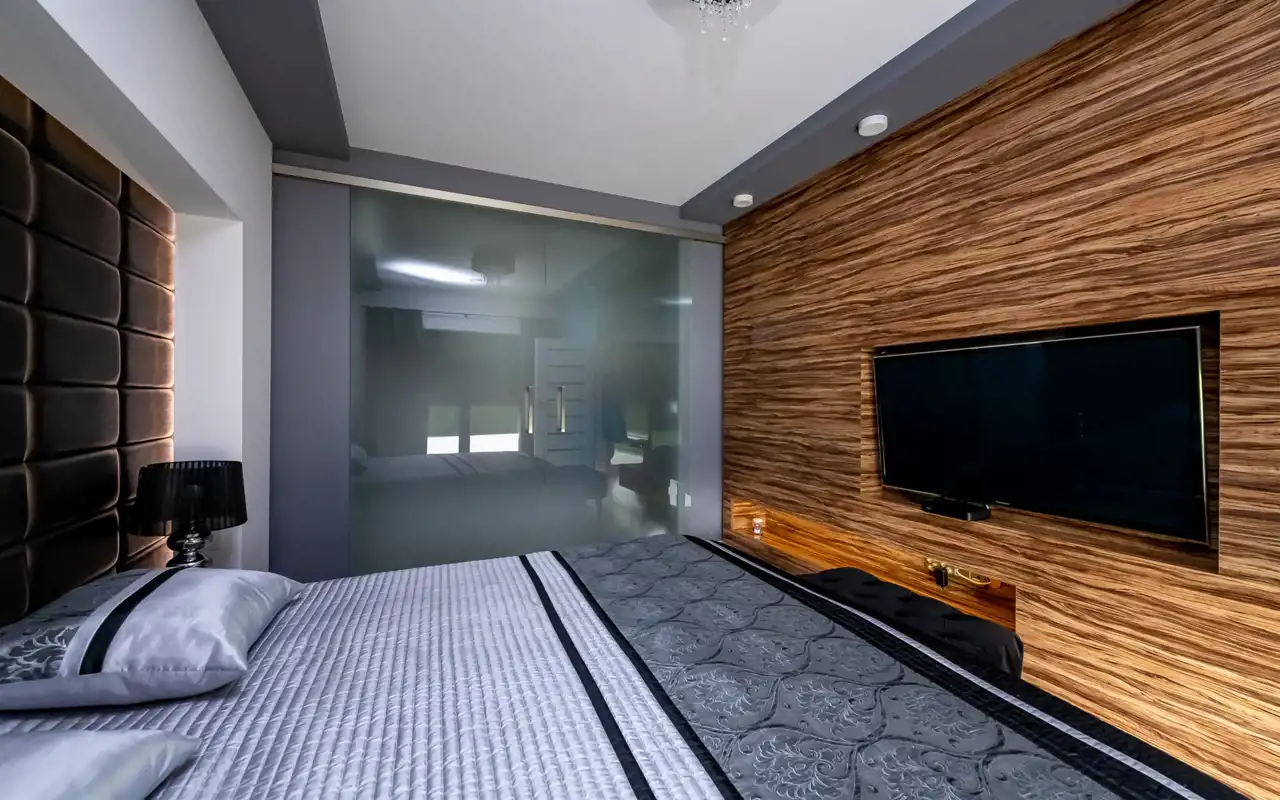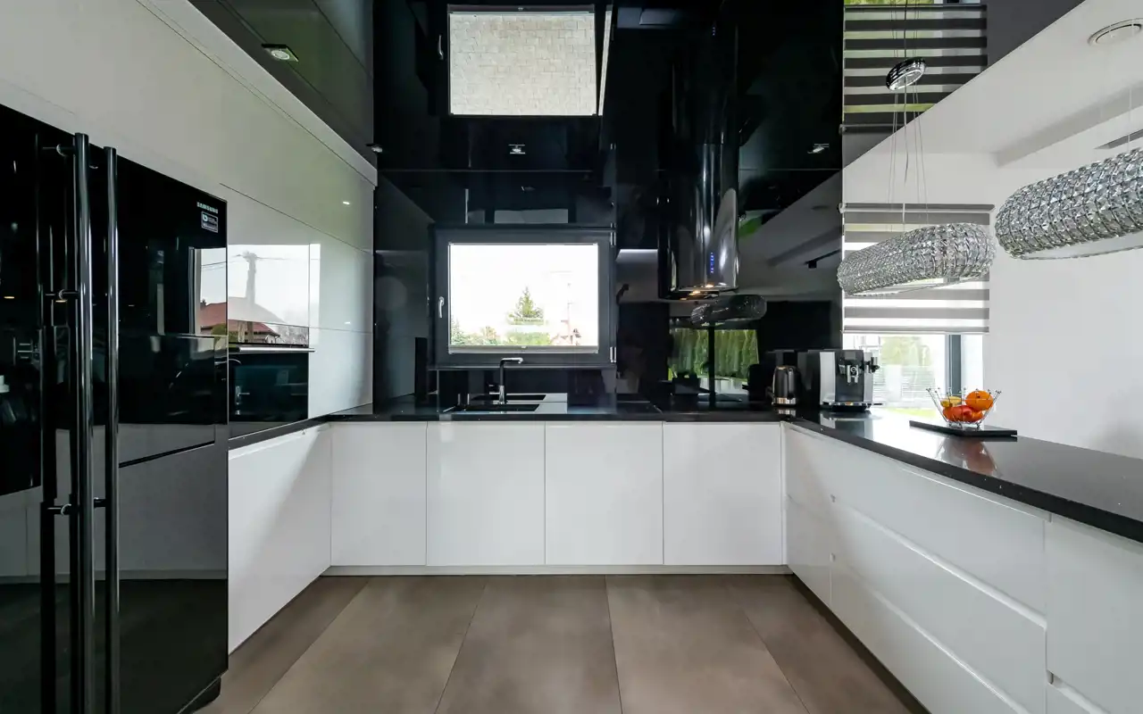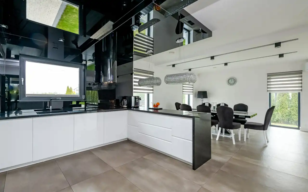 Dom z wieloma udogodnieniami. Bogate i nowocześnie wykończone wnętrze. Kuchnia wykonana na zamówienie od stolarza, blaty kuchenne wykonane ze spieków kwarcowych. Pełne AGD wliczone w cenę nieruchomości (Boch i Samsung). Przestronny salon z zabudową RTV. W części centralnej domu klimatyzacja Hisense. Przemyślany rozkład pomieszczeń wraz z pomocniczymi częściami takimi jak garderoba w głównej sypialni czy pralnia z suszarnią.