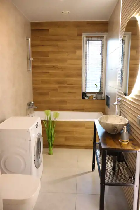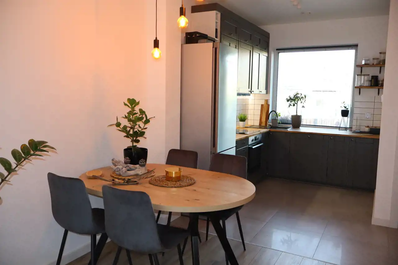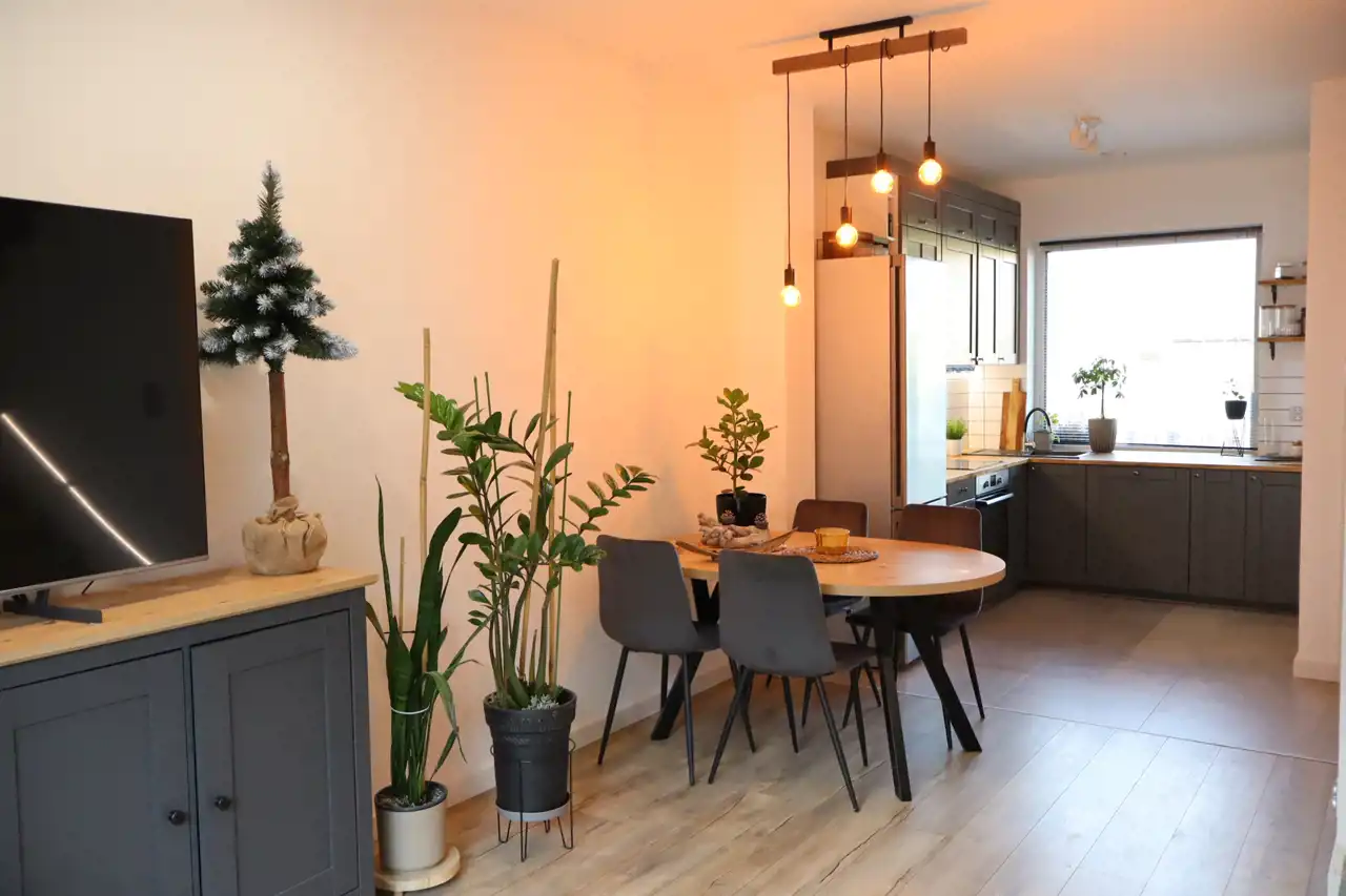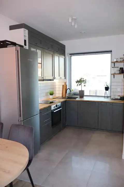 W cenie domu zostaje zabudowa kuchenna, zabudowy stałe, meble oraz sprzęt AGD: lodówka, zmywarka, płyta indukcyjna, piekarnik, pralka.