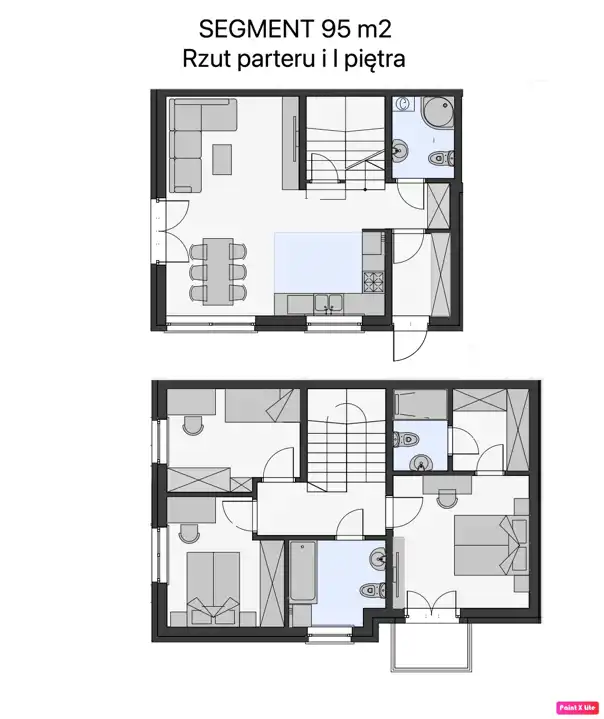 - Wejście na strych (ponad 50 m²): do adaptacji według Twojego pomysłu – pralnia, siłownia, pracownia? Decyzja należy do Ciebie (adaptacja za dodatkową opłatą – szczegóły w biurze).