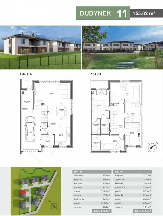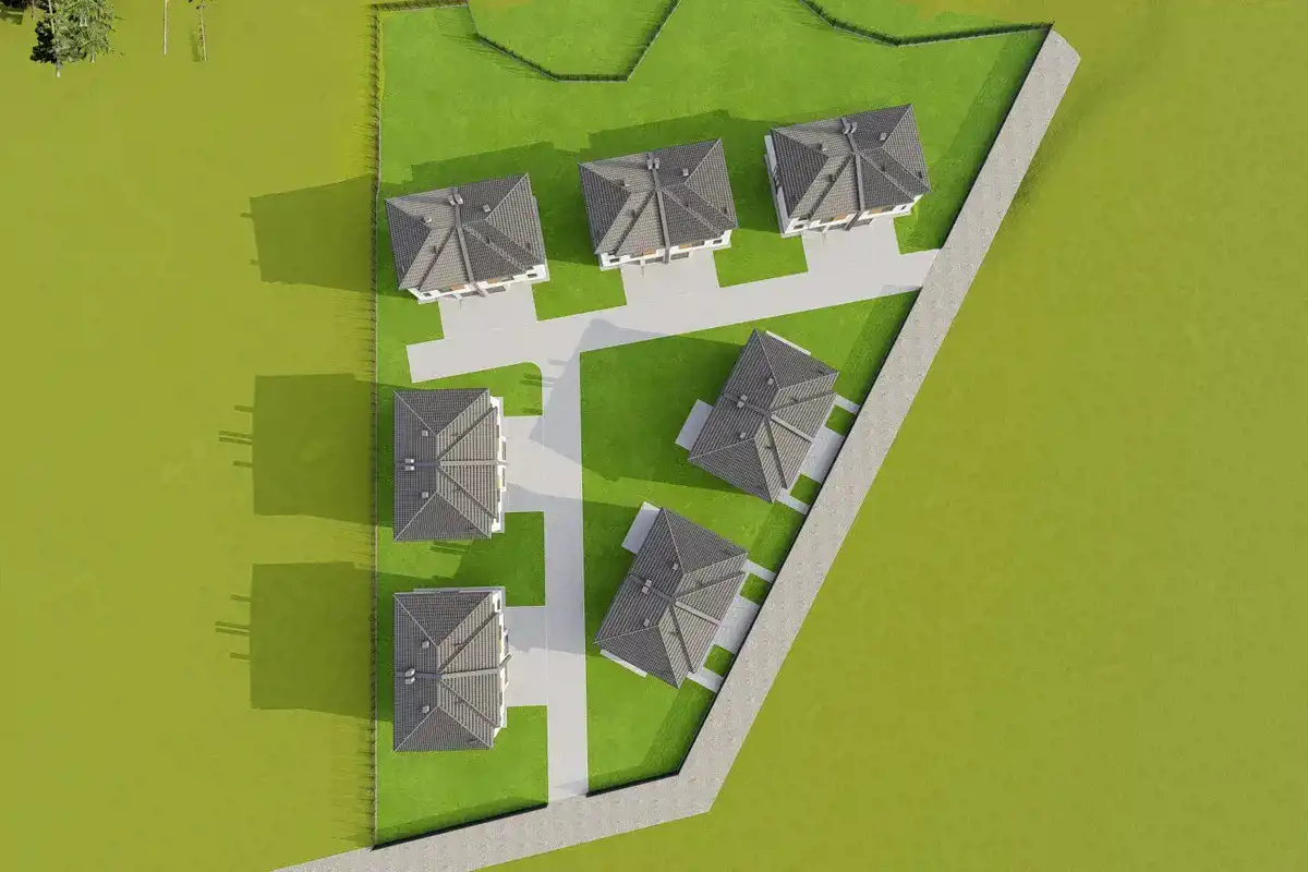 Inwestycja obejmuje budowę 14 domów energooszczędnych w zabudowie bliźniaczej. Budynki będą dwukondygnacyjne, każdy o powierzchni całkowitej 153,82 m kw. z garażem i miejscem postojowym.